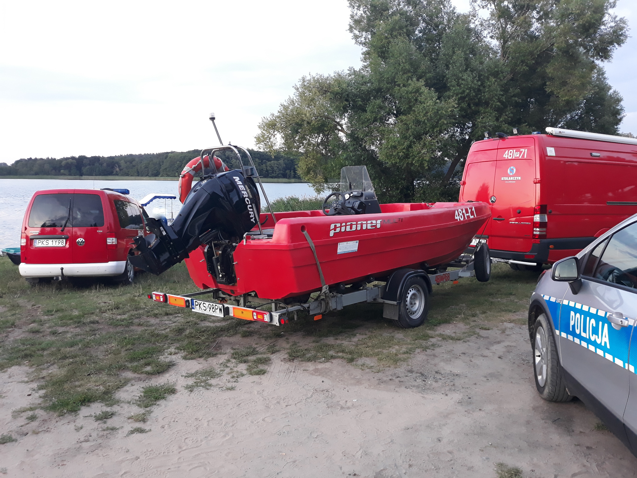 Ze względu na charakter miejsca zadysponowano na miejsce siły przygotowane do podjęcia poszukiwań w wodzie w tym również Specjalistyczną Grupę Ratownictwa Wodno–Nurkowego z kościańskiej Komendy oraz jednostkę OSP Krzywiń, a także OSP Jerka. Po przybyciu na plażę nawiązano kontakt z ratownikami Wodnego Ochotniczego Pogotowia Ratunkowego, którzy prowadzili już akcję poszukiwawczą. Zwodowano łodzie i nurkowie przygotowali się do zejścia pod wodę. Dużym wsparciem okazały się informacje od wędkarzy, którzy przy pomocy echosondy wytypowali miejsce gdzie może znajdować się osoba zaginiona. Po 10 minutach poszukiwań na głębokości 5 metrów zlokalizowano ciało poszkodowanego. Strażacy już na łodzi rozpoczęli resuscytację krążeniowo-oddechową. Trwające blisko 1,5 godziny działania na brzegu niestety nie przywróciły funkcji życiowych i stwierdzony został zgon 17-letniego mężczyzny. Dalsze czynności mające na celu ustalenie okoliczności utonięcia prowadziła kościańska Policja pod nadzorem Prokuratora.