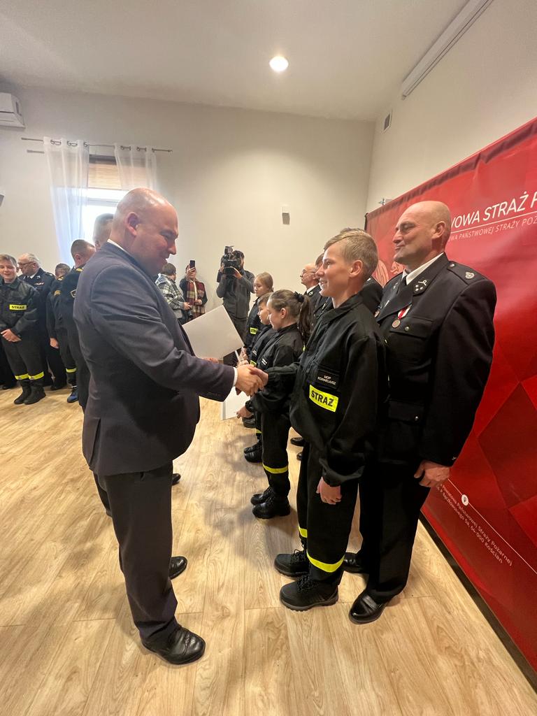 Podczas uroczystości dokonano również wręczenia druhom OSP decyzji o przyznaniu świadczenia ratowniczego z tytułu wysługi lat w OSP.