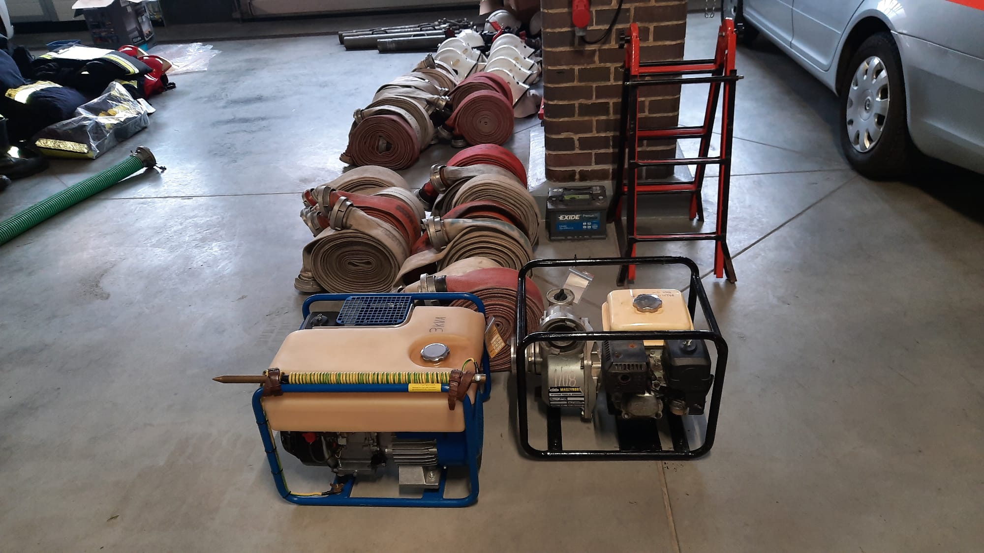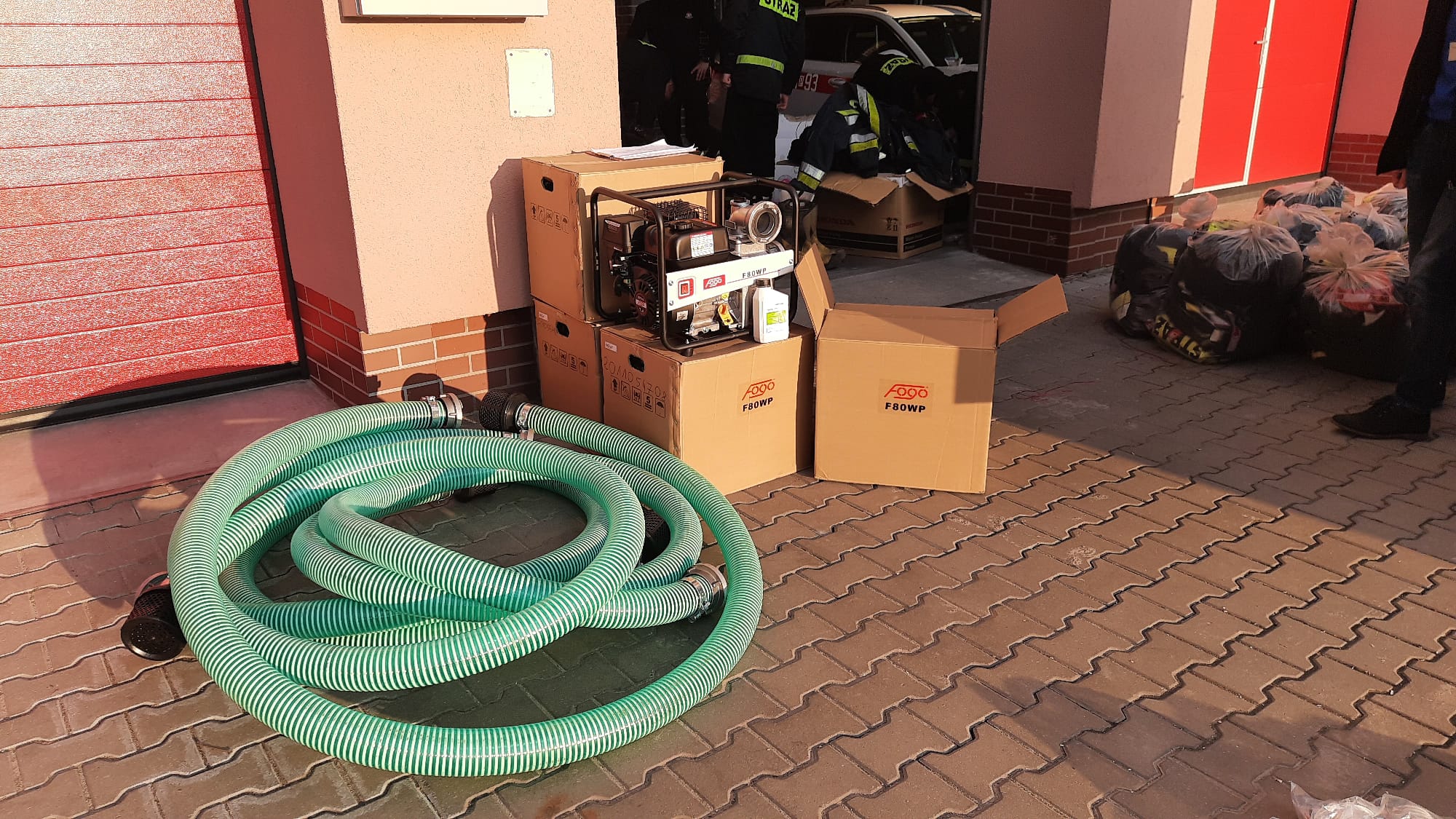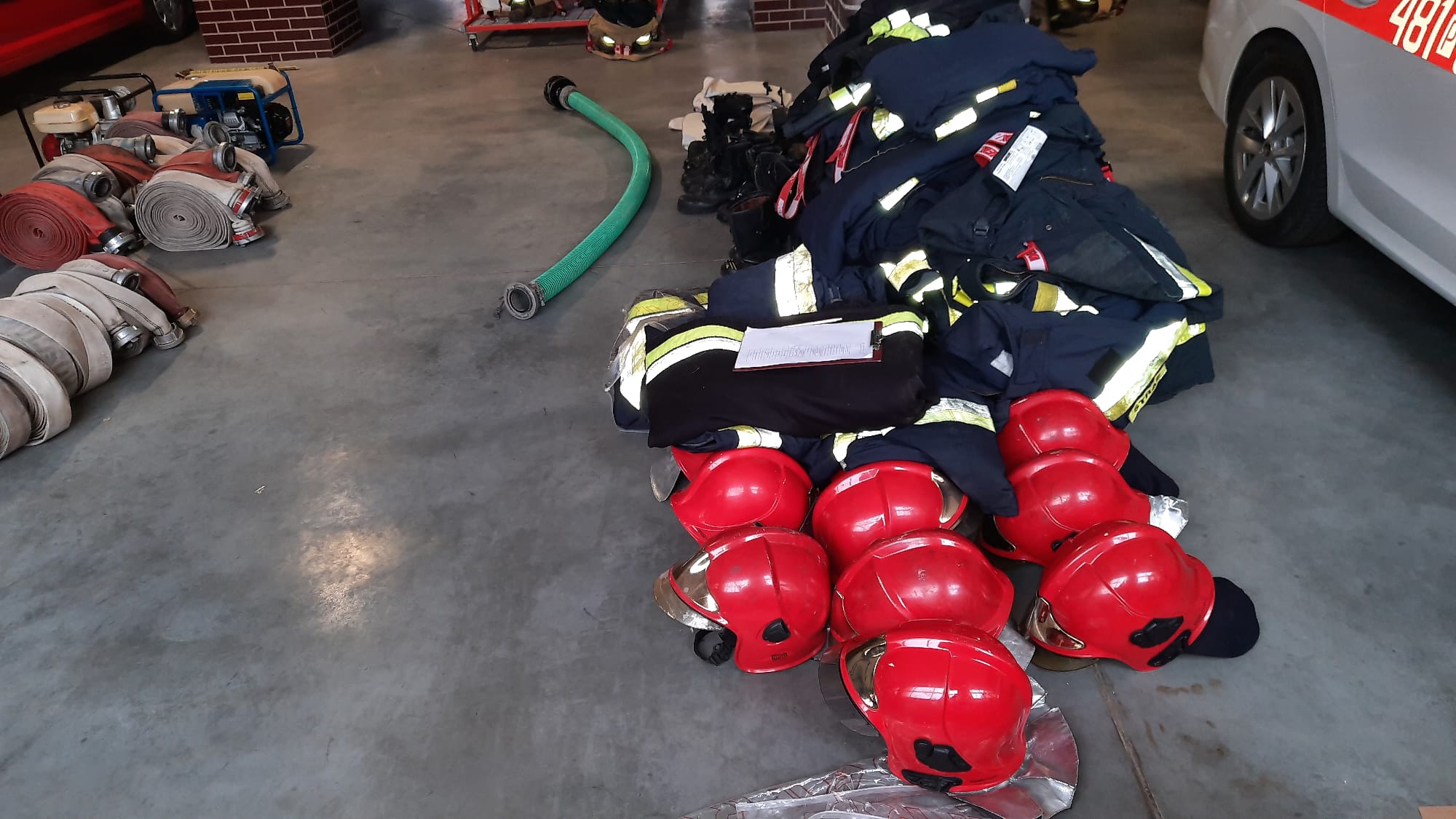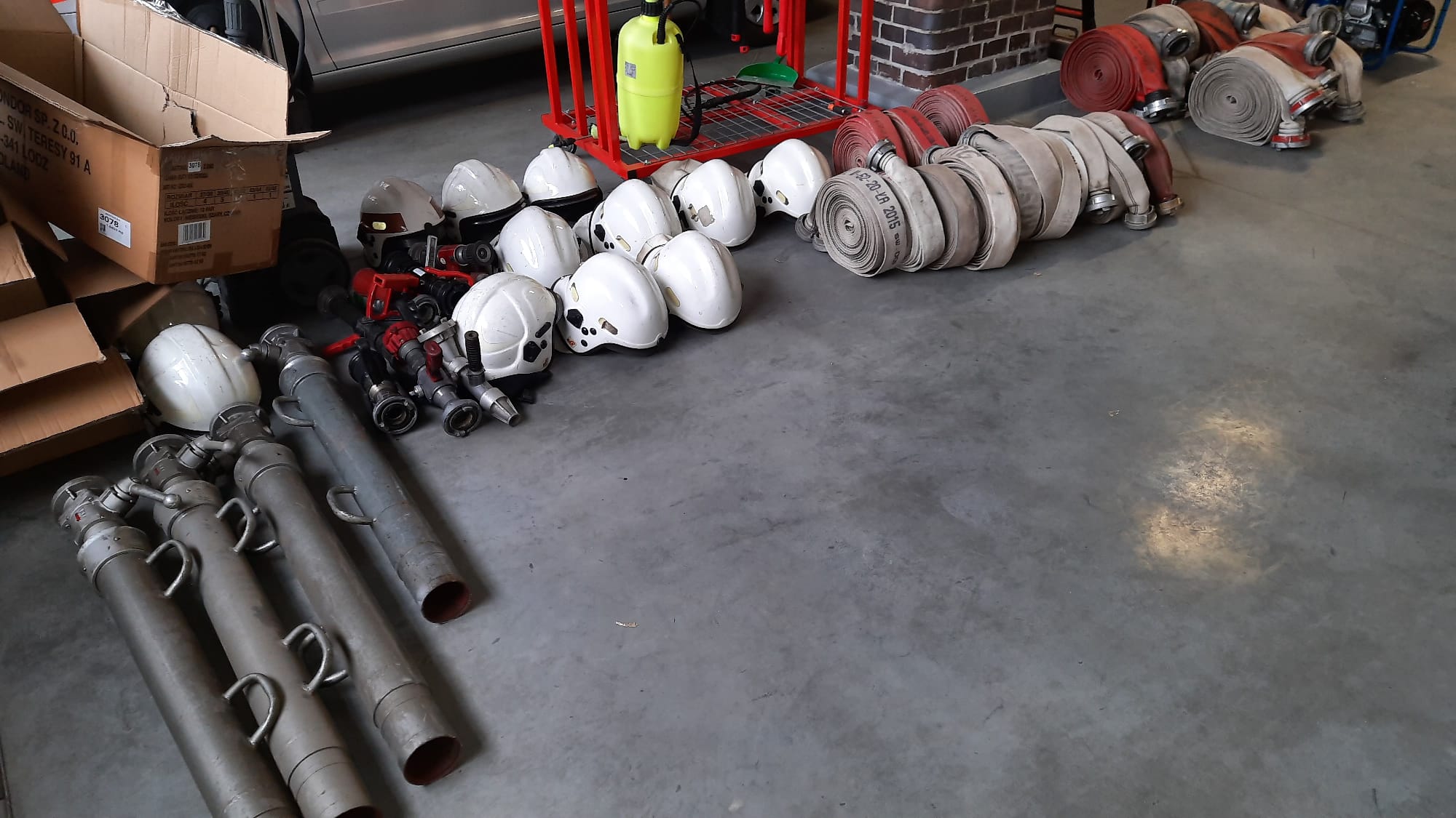 Wśród zebranego sprzętu znajdują się m.in.: węże pożarnicze, prądownice, hełmy, rękawice, kominiarki, buty specjalne, ubrania specjalne, agregaty prądotwórcze oraz motopompy.
