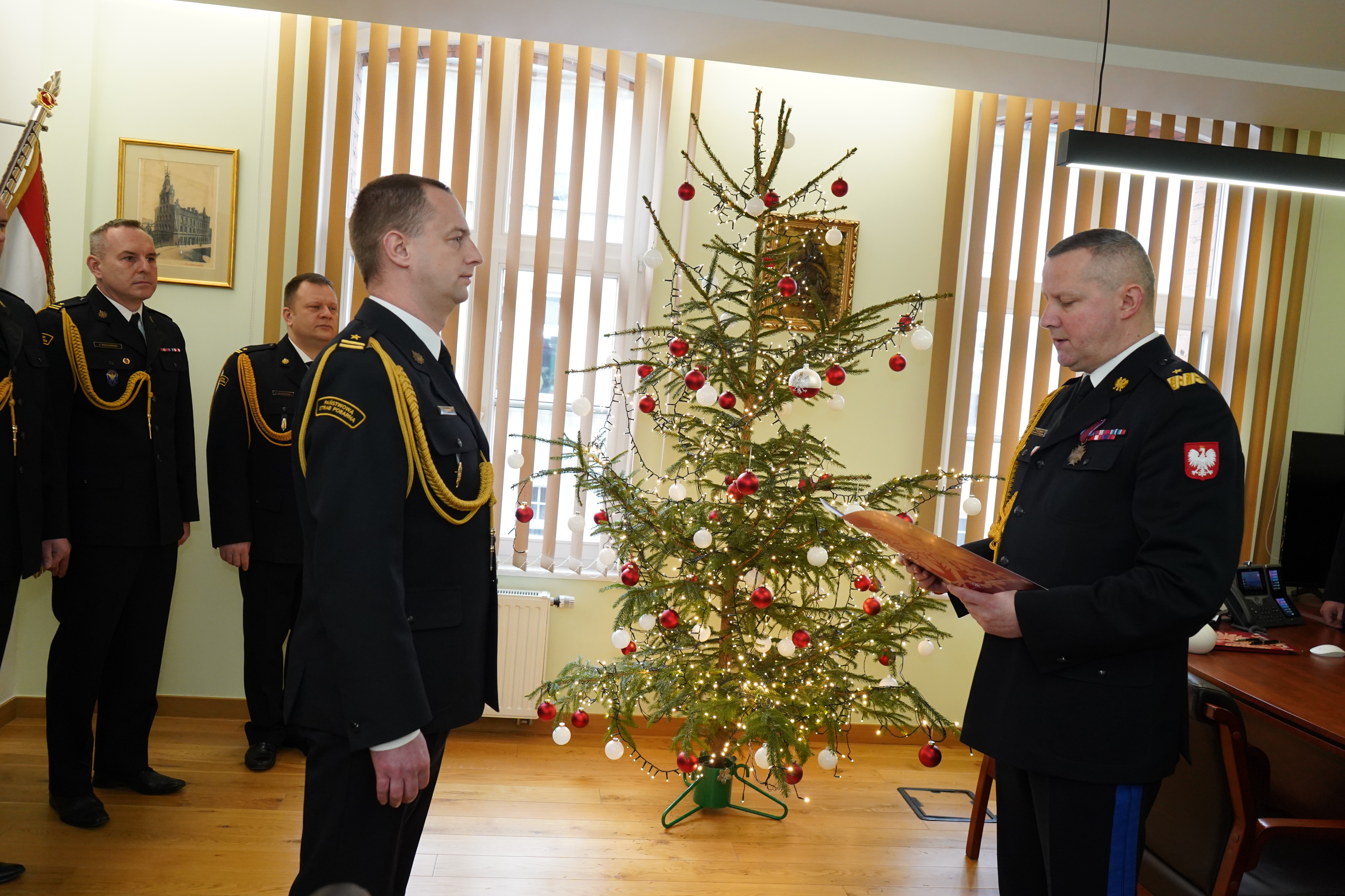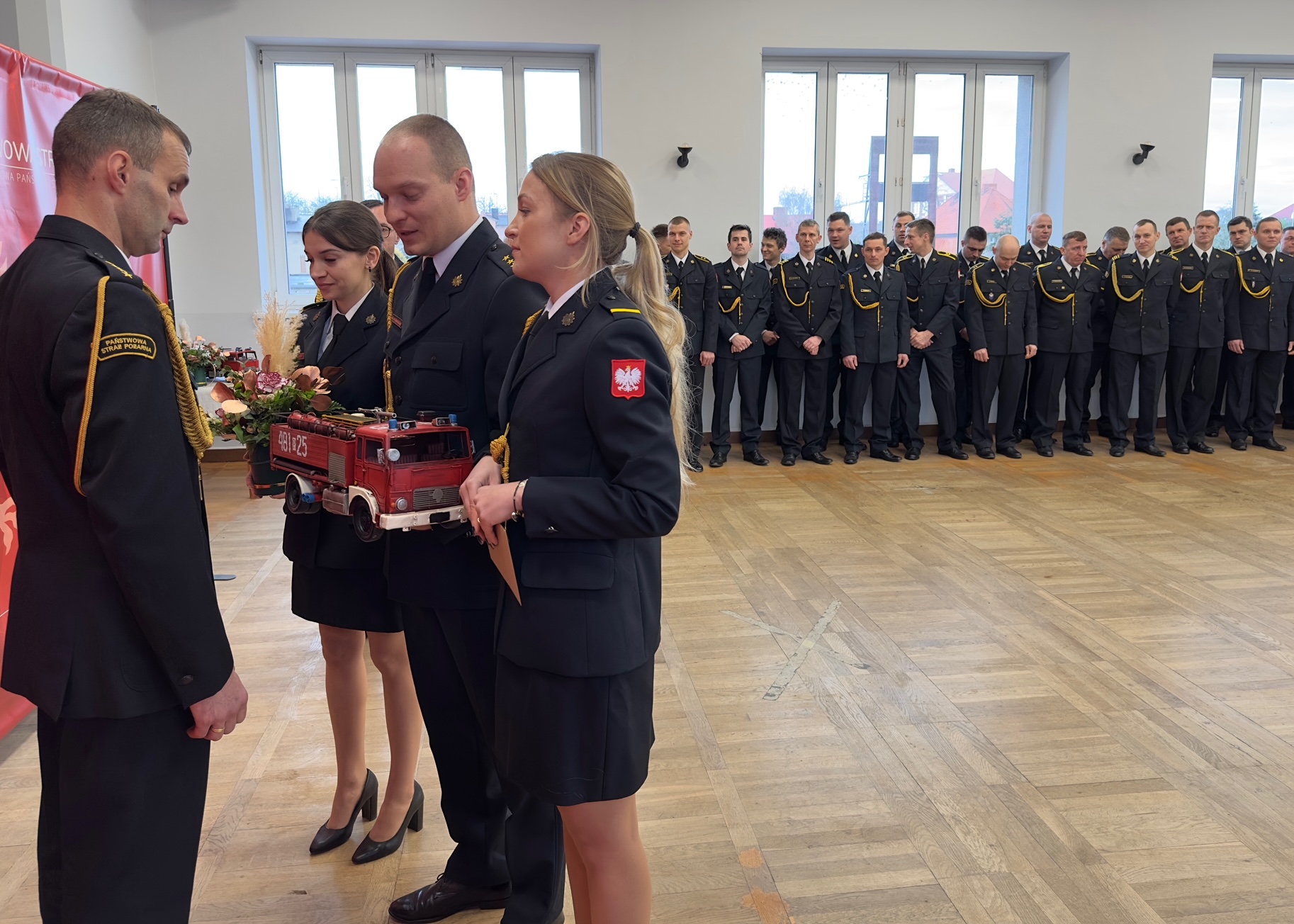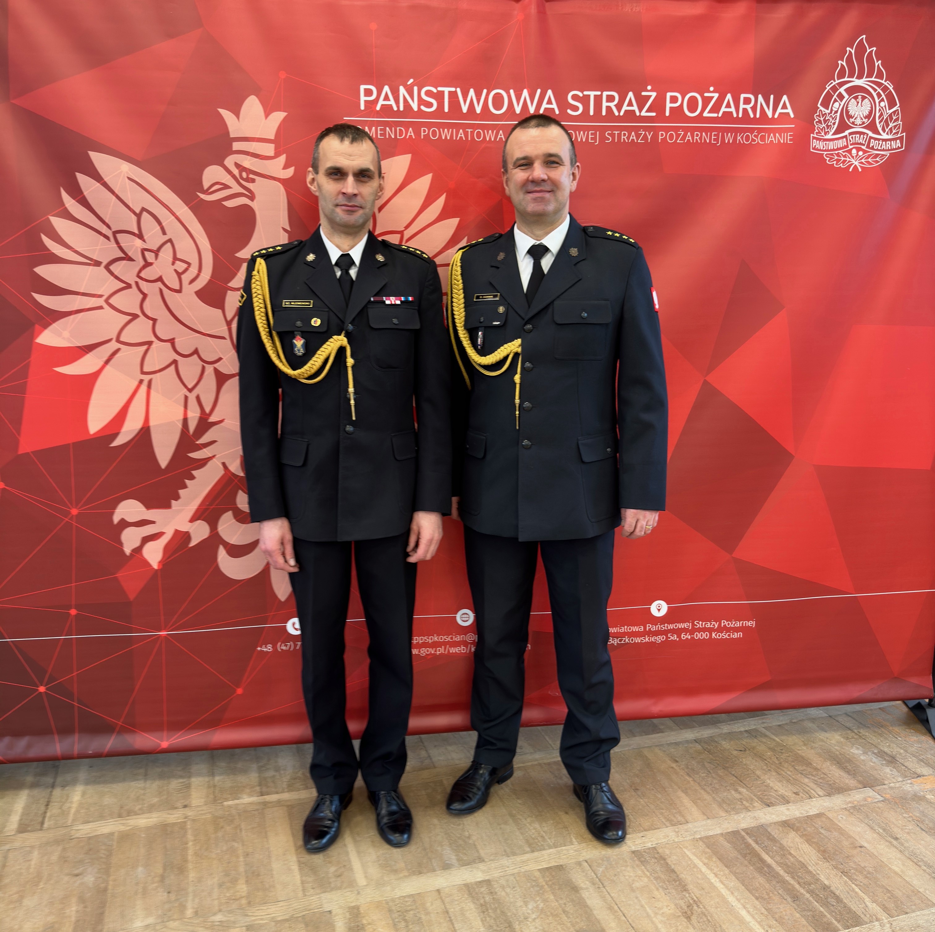 Następnie głos zabrał mł. bryg. Jacek Donaj, pełniący od dnia 3 stycznia 2024 roku obowiązki Komendanta Powiatowego PSP w Kościanie. W imieniu funkcjonariuszy i pracowników cywilnych podziękował kończącym służbę komendantom, za ich wkład i zaangażowanie w szeregach Państwowej Straży Pożarnej. Wraz z przejęciem obowiązków Komendanta zadeklarował kontynuację wcześniejszych zamierzeń oraz wdrożenie nowych celów na kolejne lata.
