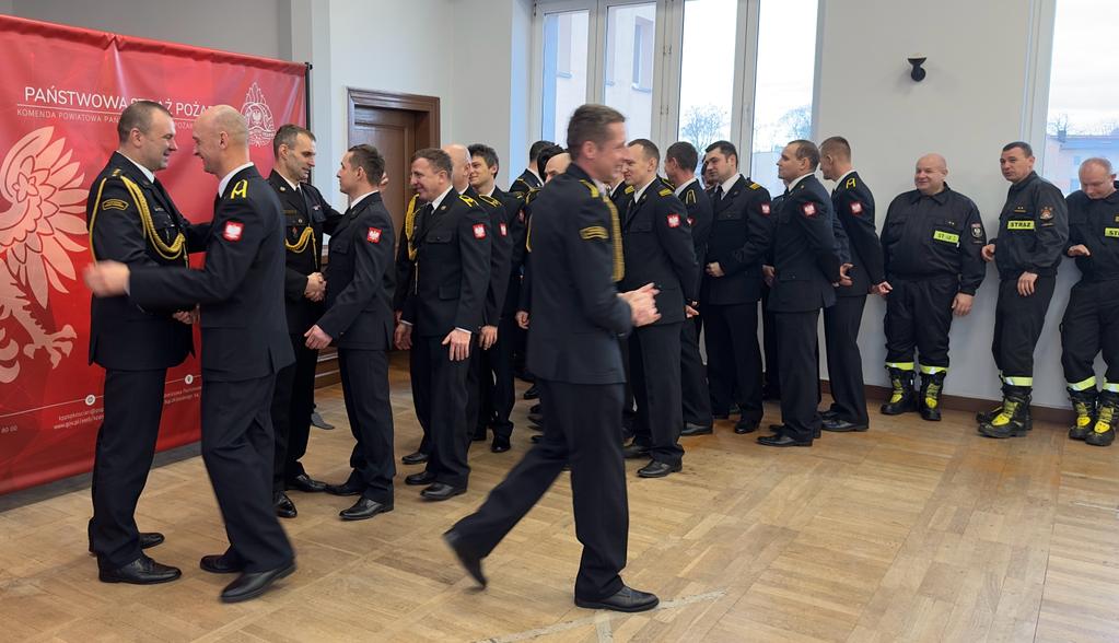 Zgromadzeni Goście oraz pracownicy Komendy z wyrazami wdzięczności zwrócili się do st. kpt. Szymona Klemenskiego oraz st. kpt. Damiana Gorwy za lata służby, dobra współpracę i wkład w bezpieczeństwo mieszkańców Ziemi Kościańskiej. Z kolei mł. bryg Jacek Donaj odebrał gratulacje z okazji awansu oraz życzenia realizacji zamierzonych celów.