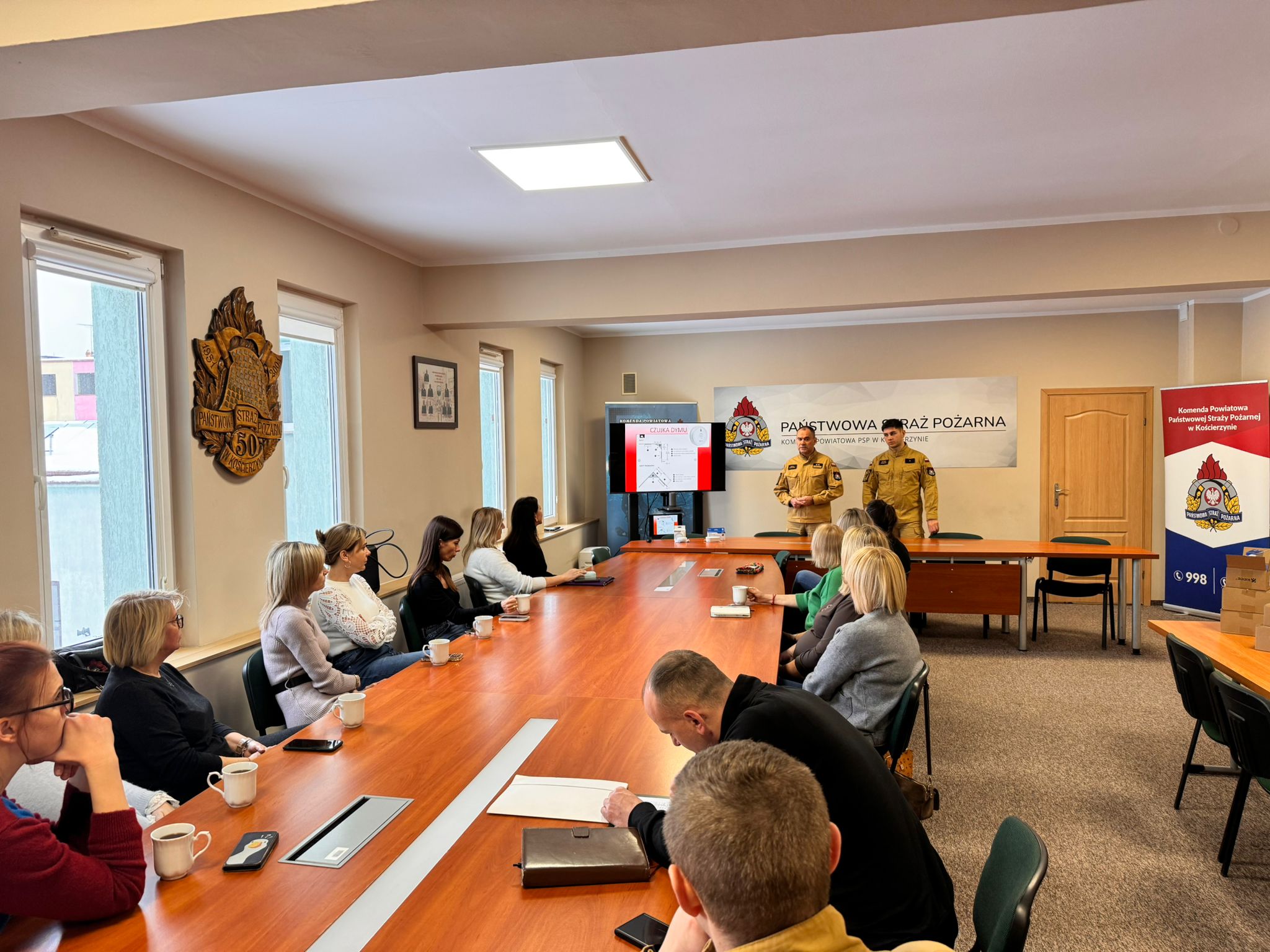 Dnia 19.02.2026 roku w siedzibie Komendy Powiatowej PSP w Kościerzynie odbyło się spotkanie szkoleniowe poświęcone zagadnieniom bezpieczeństwa pożarowego oraz prawidłowego stosowania czujek dymu i czadu. W wydarzeniu uczestniczyli pracownicy Ośrodków Pomocy Społecznej z terenu powiatu, a także reprezentanci Oddziałów Gminnych ZOSP RP.