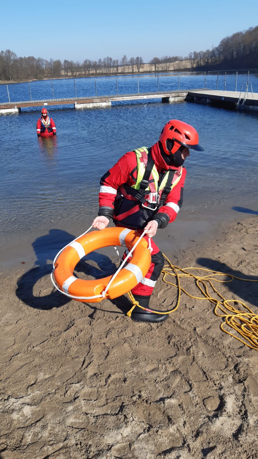 Ćwiczenia odbywały się na jeziorze Gałęźnym i odwzorowywały warunki, w których najczęściej dochodzi do złamania tafli lodu pod ciężarem człowieka lub zwierzęcia.
