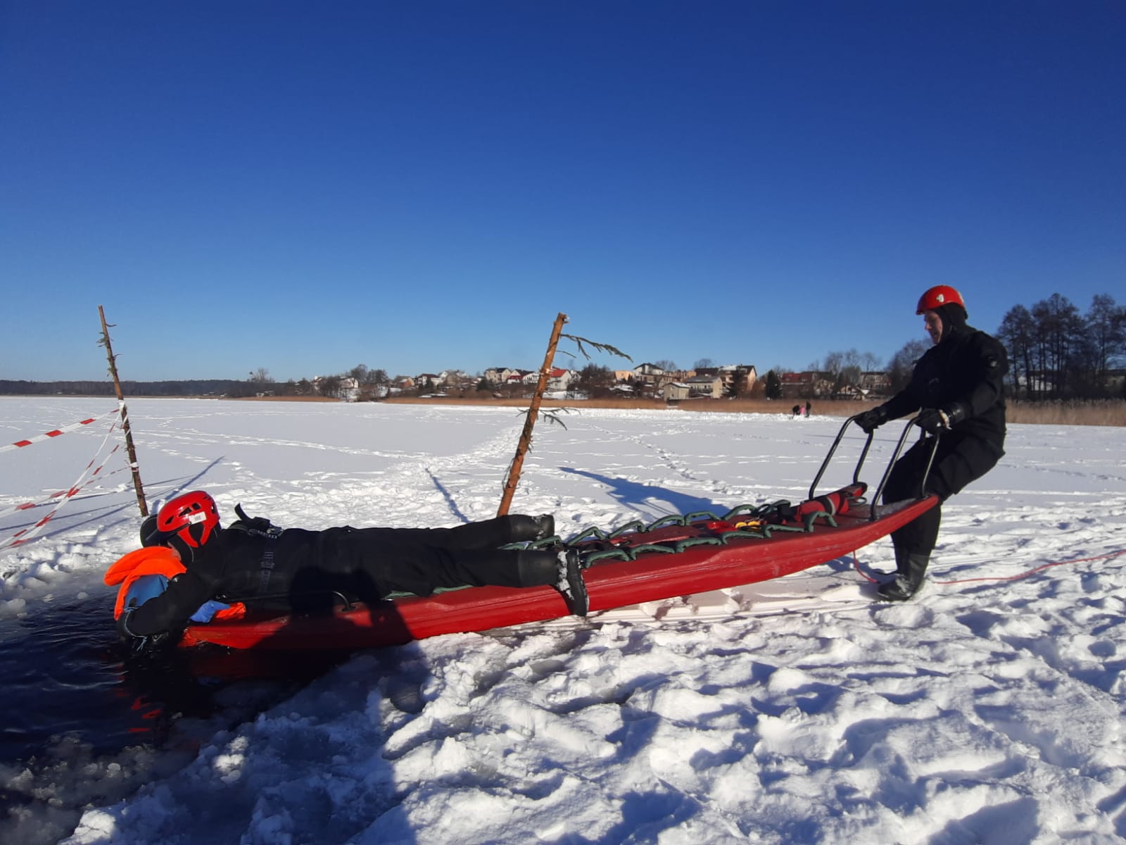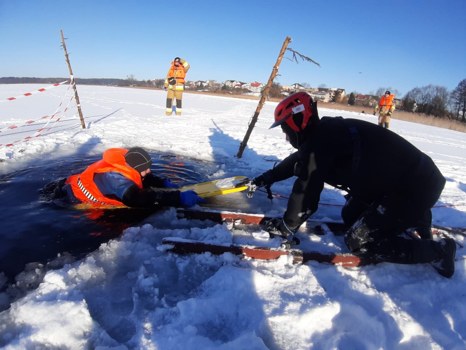 W dniu 6 lutego na jeziorze Wielewskim odbyły się ćwiczenia doskonalące z zakresu ratownictwa na obszarach wodnych w warunkach zimowych.