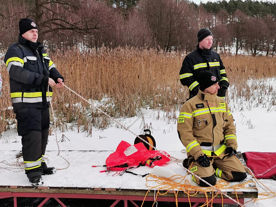 Podobne ćwiczenia zorganizowała jednostka OSP Raduń w dniu 30 stycznia 2021 r. na jeziorze Raduń.