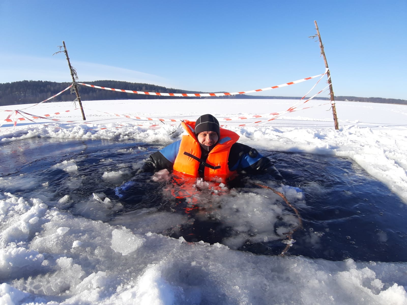 - przećwiczenie technik umożliwiających ewakuację poszkodowanych pod którymi załamał się lód,