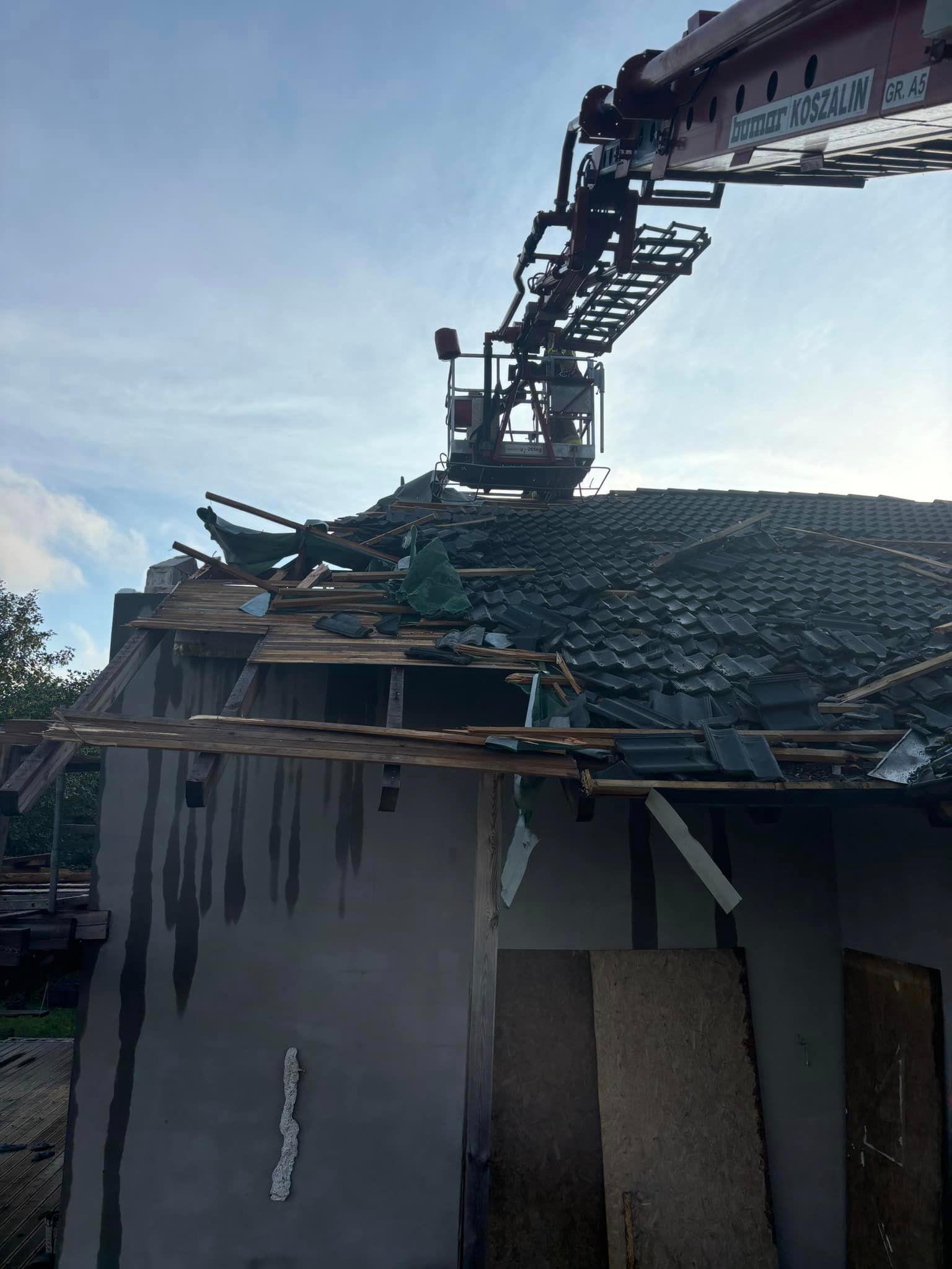 W Starej Kiszewie na ulicy Kościerskiej wiatr zerwał dach z budynku gospodarczego oraz stodoły.