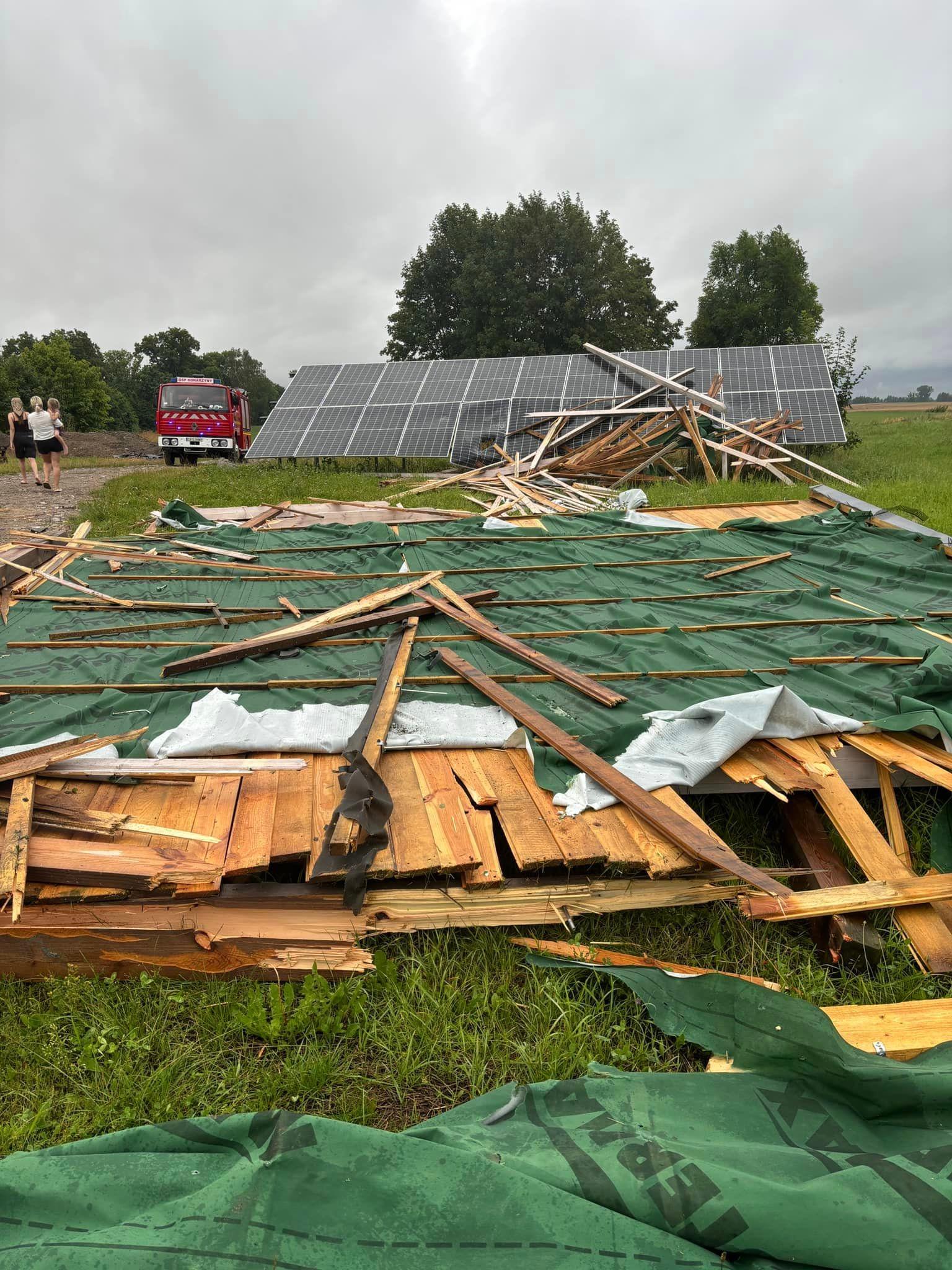 W miejscowości Iłownica wiatr zerwał dach z garażu, który następnie spadł na instalację fotowoltaiczną znajdującą się na gruncie. Brak osób poszkodowanych.