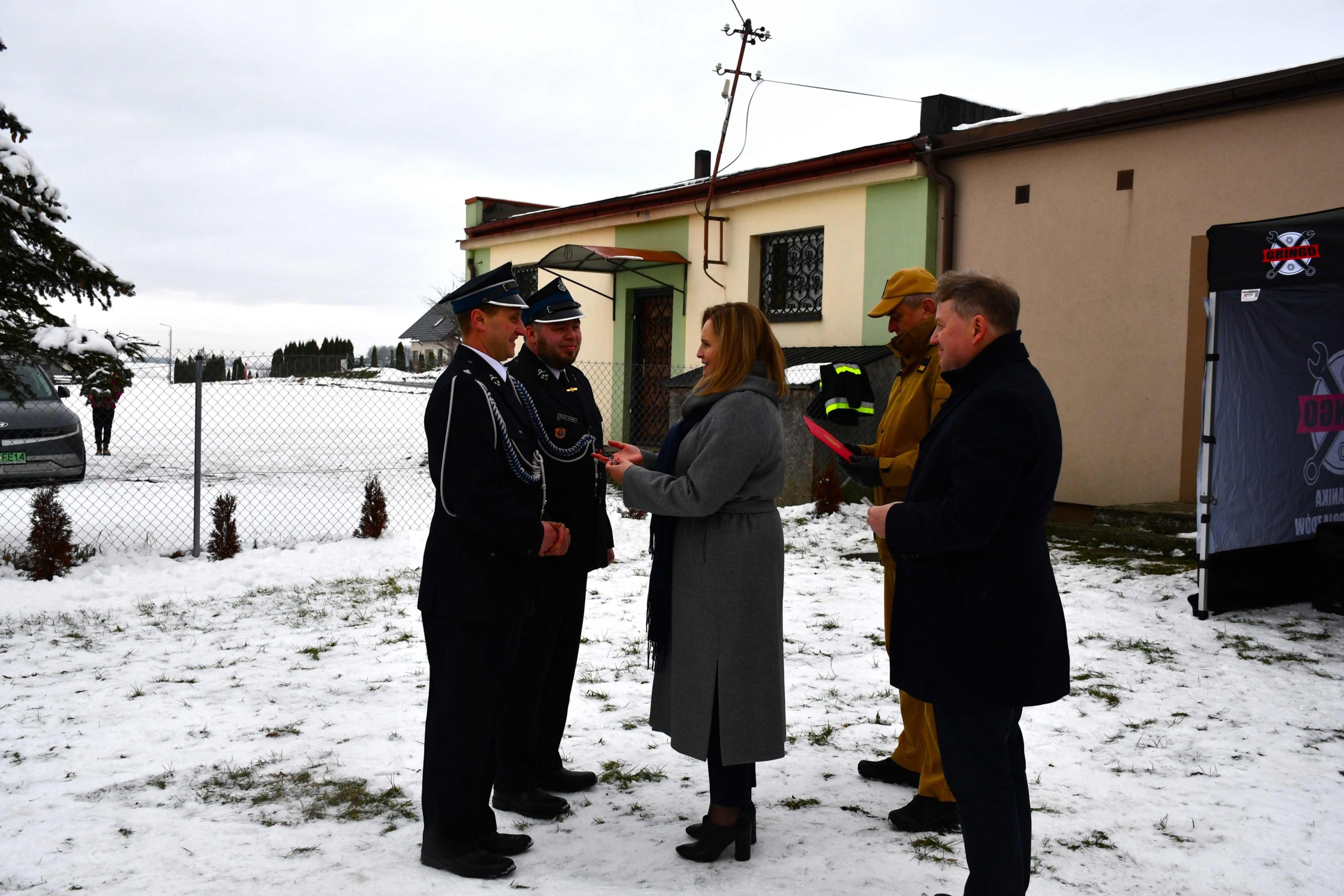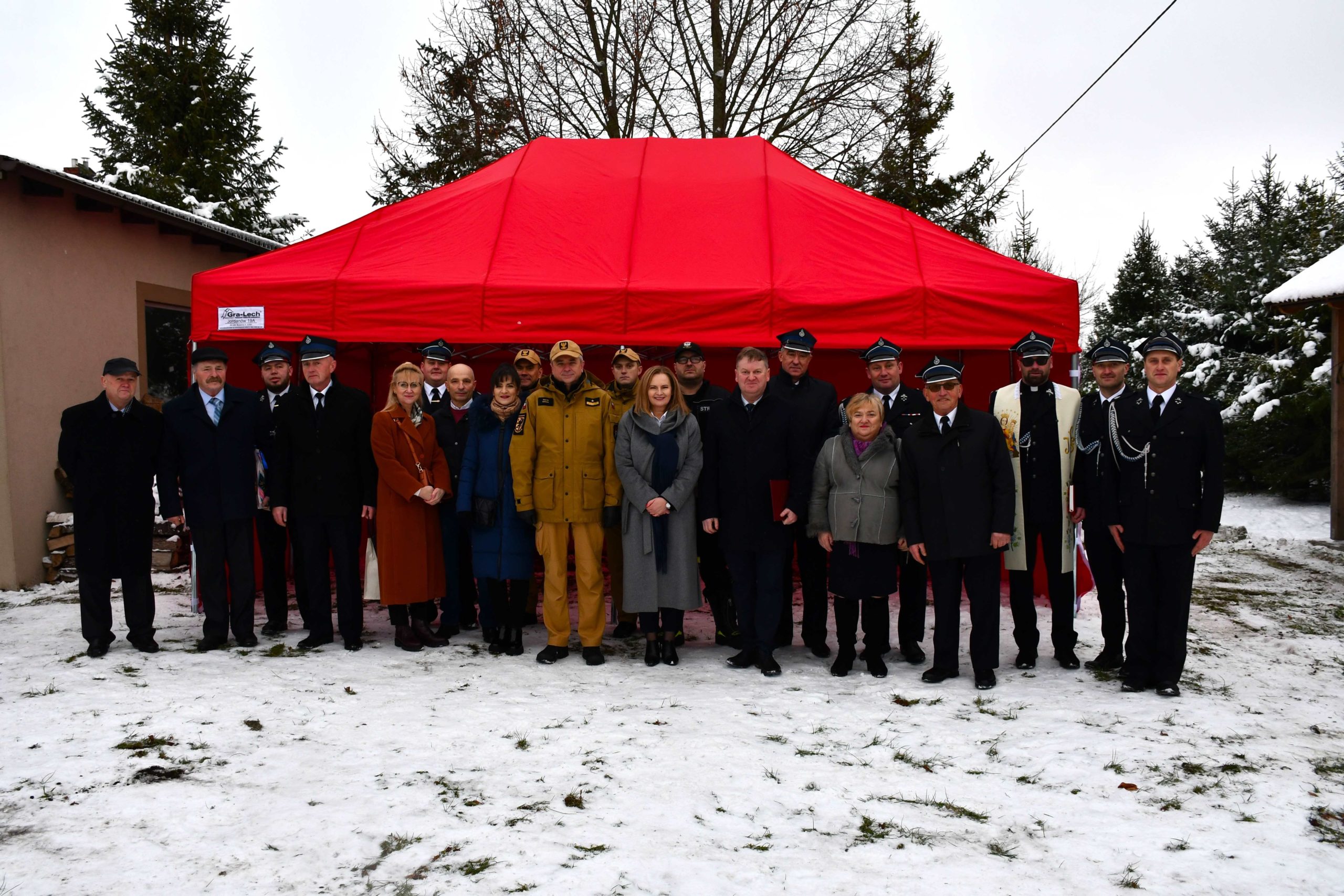 Starosta Kościerski, a zarazem Prezes Zarządu Oddziału Powiatowego ZOSP RP w Kościerzynie Alicja Żurawska, Wójt Gminy Liniewo Mirosław Warczak, Radny Powiatowy Krzysztof Michnowski, Przewodniczący Rady Gminy Liniewo Adam Sosnowski oraz pozostali zaproszeni goście.