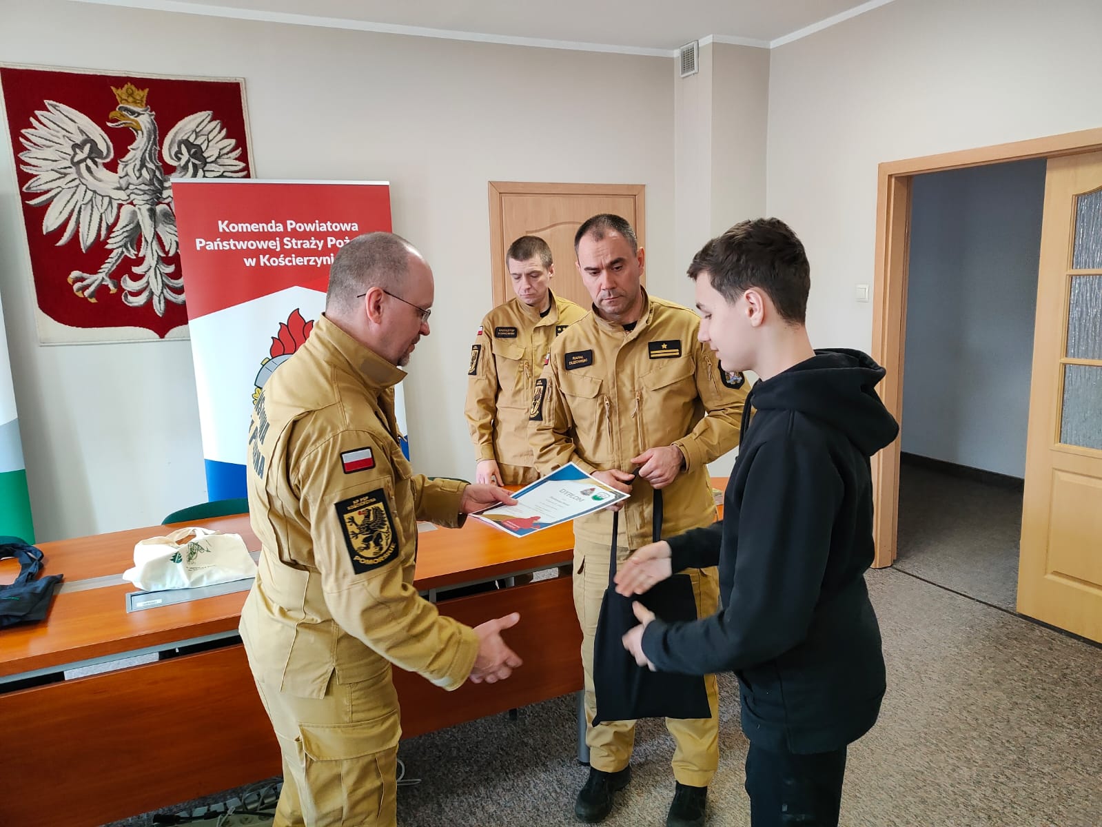 Nagrody dla laureatów oraz startujących wręczył Komendant Powiatowy Państwowej Straży Pożarnej w Kościerzynie st. bryg. Tomasz Klinkosz wraz z Zastępcą Komendanta Powiatowego Państwowej Straży Pożarnej w Kościerzynie mł. bryg. Rafałem Duzowskim. Nagrody dla uczestników ufundowało Miasto Kościerzyna oraz Nadleśnictwo Kościerzyna.