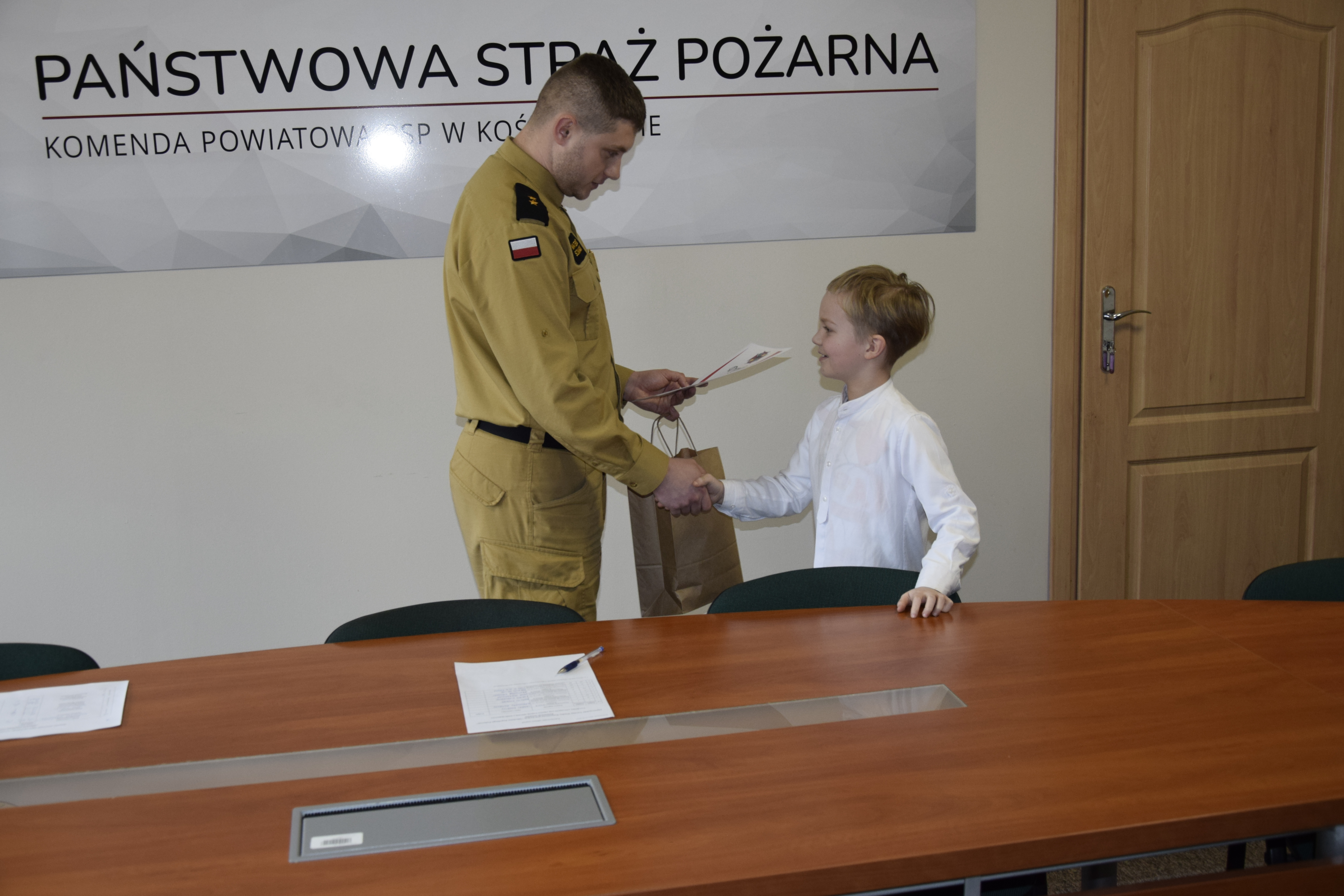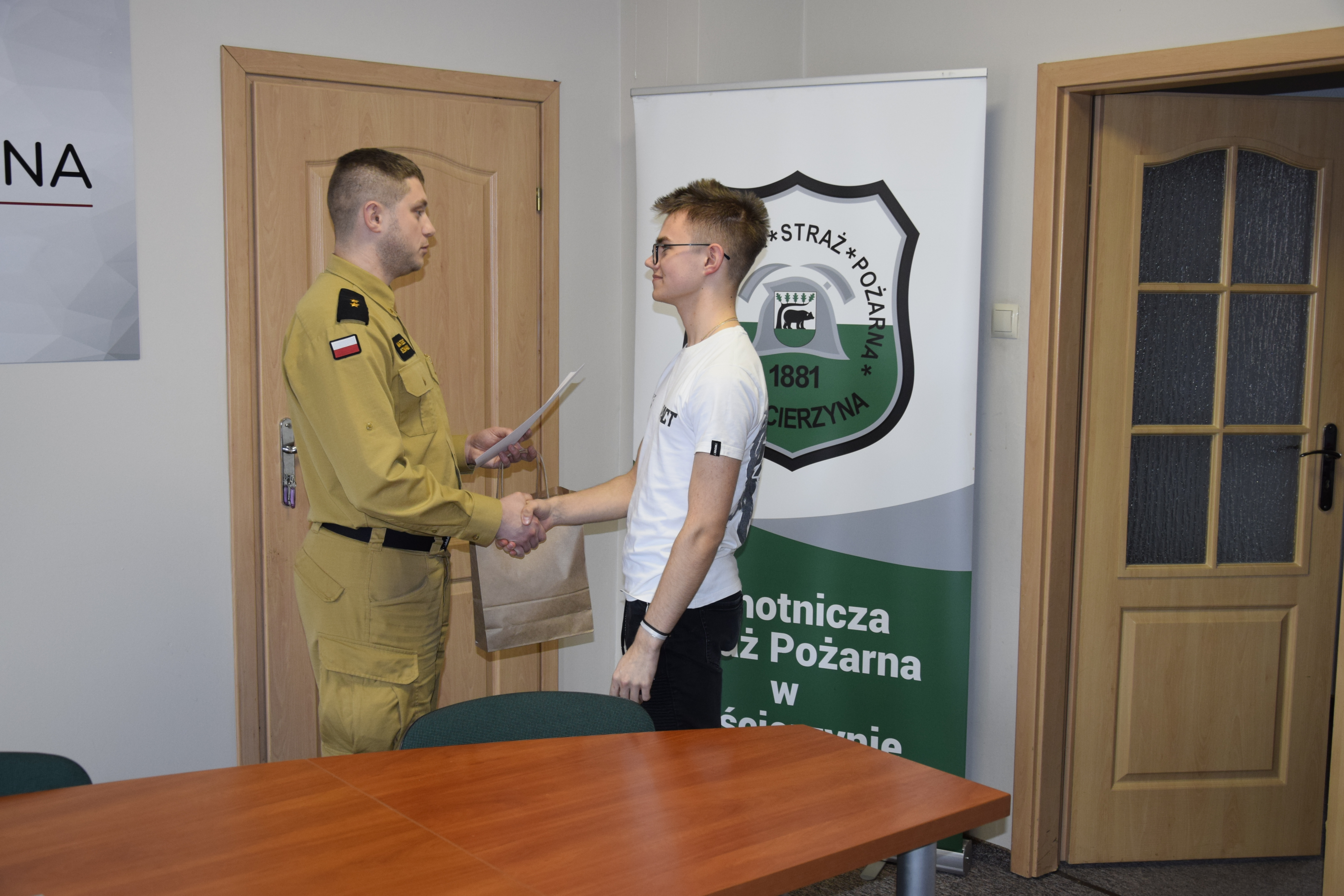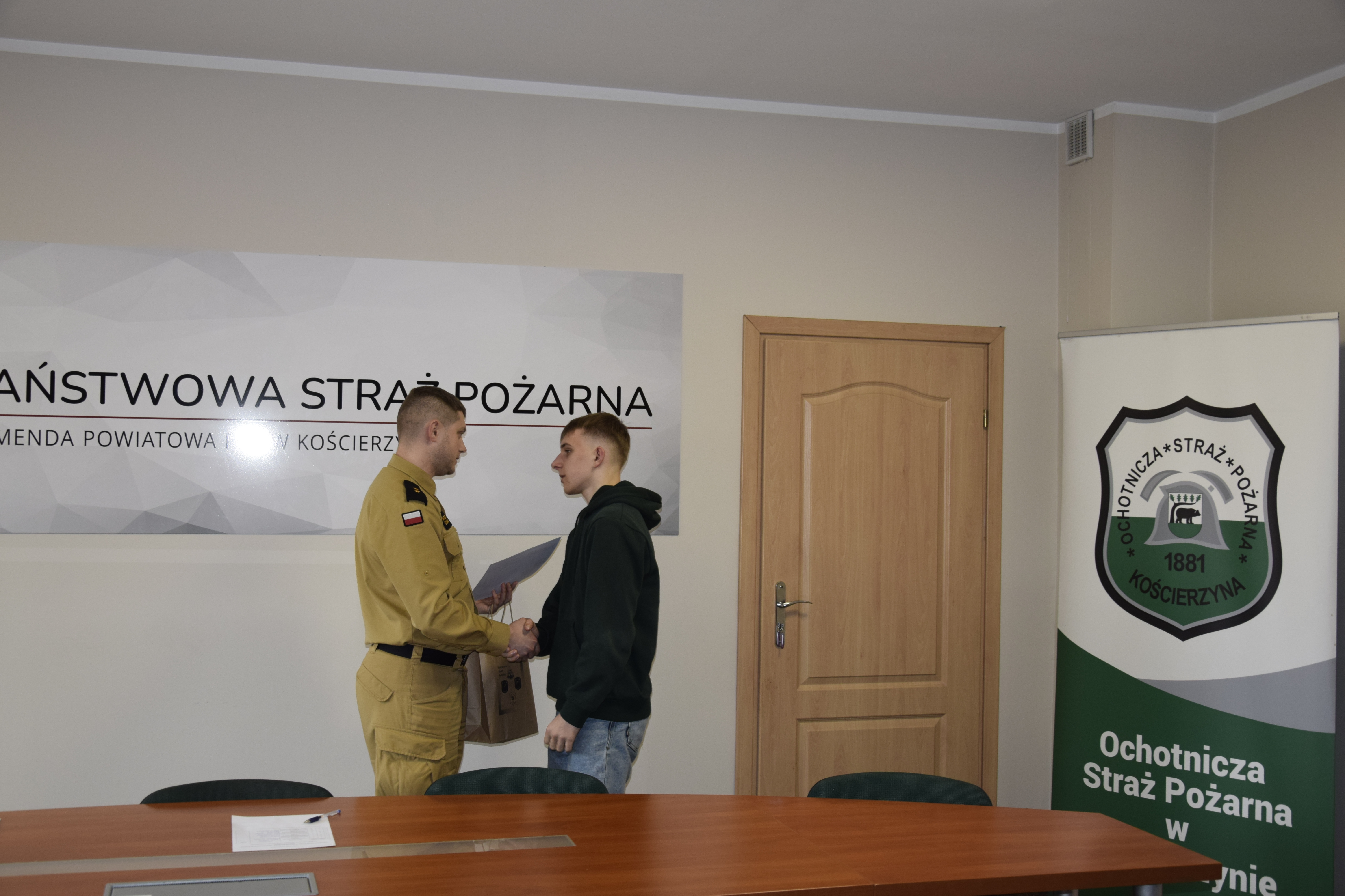 Nagrody dla laureatów oraz startujących, w imieniu Komendanta Powiatowego Państwowej Straży Pożarnej w Kościerzynie mł. bryg. Rafała Duzowskiego, wręczył mł. kpt. Mateusz Szmaglik - przewodniczący komisji turnieju. Nagrody dla uczestników ufundowała Gmina Miejska Kościerzyna oraz Nadleśnictwo Kościerzyna.