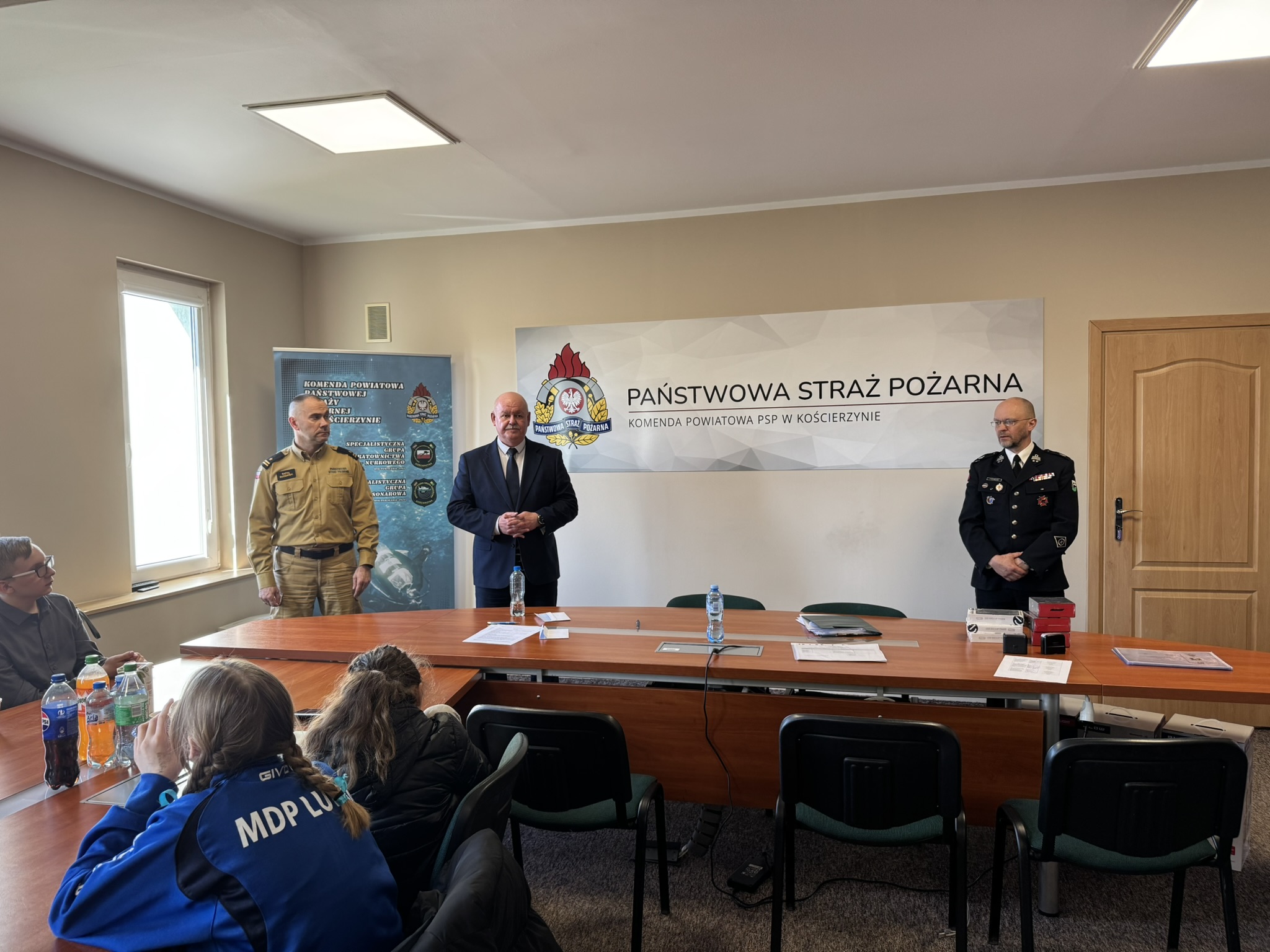 28 marca 2025 r. w Komendzie Powiatowej Państwowej Straży Pożarnej w Kościerzynie odbyły się eliminacje powiatowe Ogólnopolskiego Turnieju Wiedzy Pożarniczej "Młodzież Zapobiega Pożarom”.