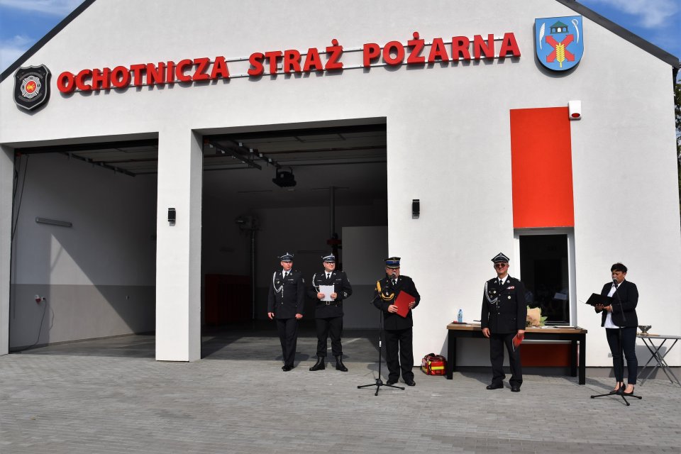 Oddanie do użytku nowej remizy było również okazją do wręczenia odznaczeń zasłużonym druhnom z tutejszej jednostki oraz udekorowania sztandaru Złotym Znakiem Związku OSP RP oraz Złotą Odznaką Zasłużony dla Pożarnictwa Województwa Pomorskiego.