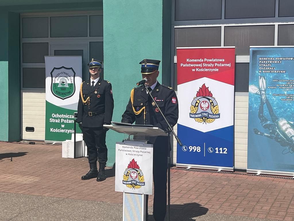 27 maja 2024 r. na placu przy Komendzie Powiatowej Państwowej Straży Pożarnej w Kościerzynie odbyła się Uroczystość Powiatowego Dnia Strażaka powiatu kościerskiego.