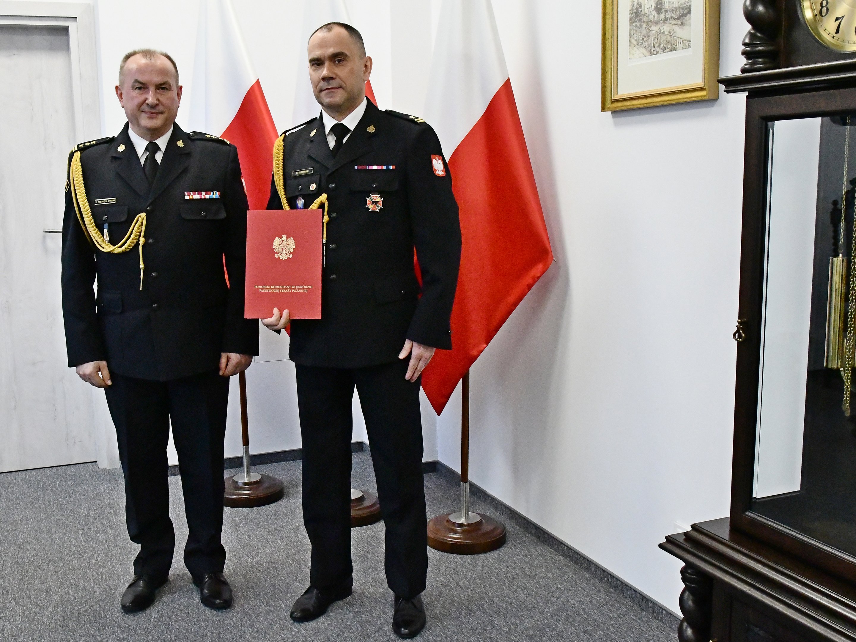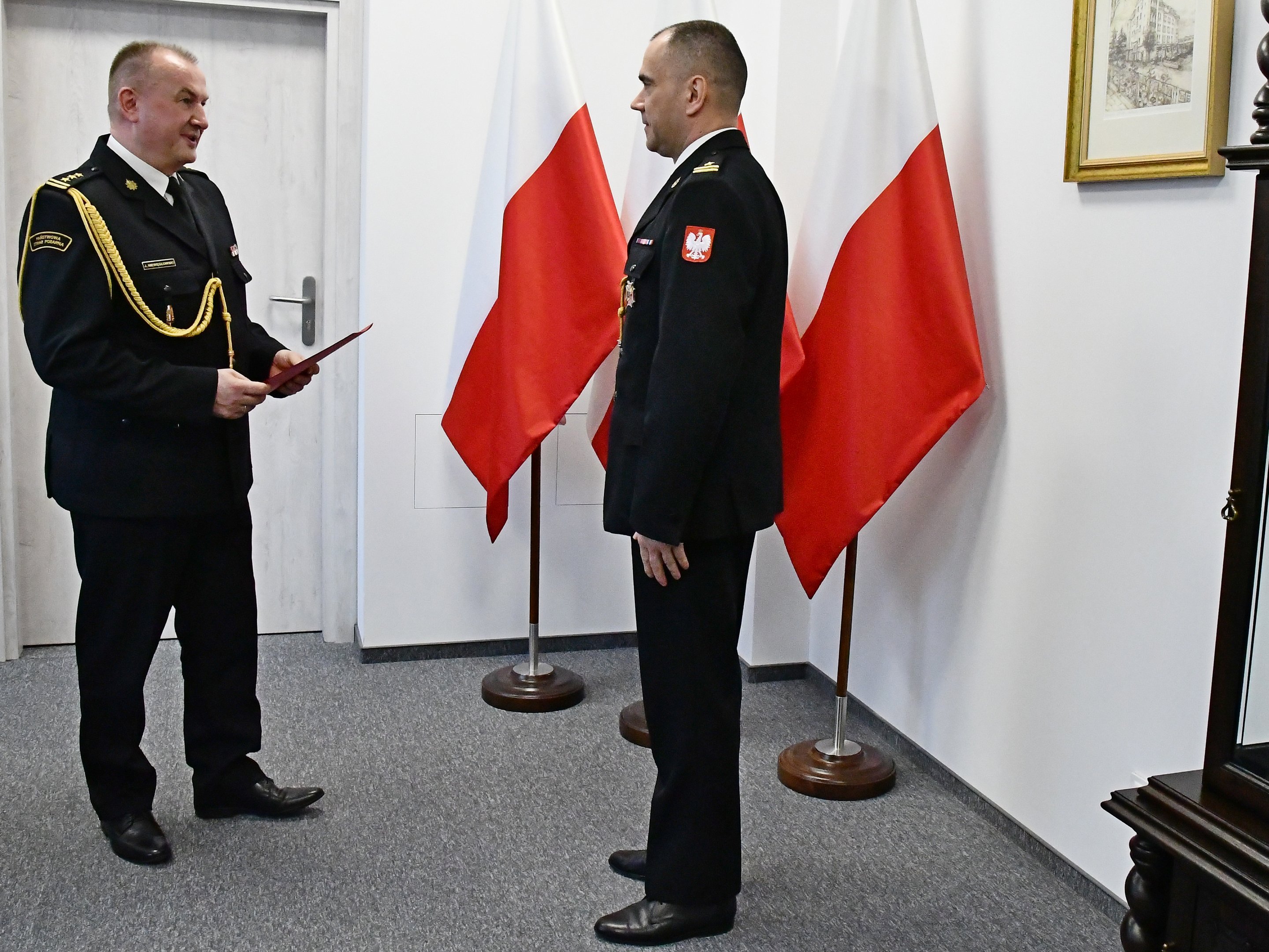w Gdańsku pomorski komendant wojewódzki Państwowej Straży Pożarnej st. bryg. Jacek Niewęgłowski wręczył akt powołania na stanowisko komendanta powiatowego Państwowej Straży Pożarnej