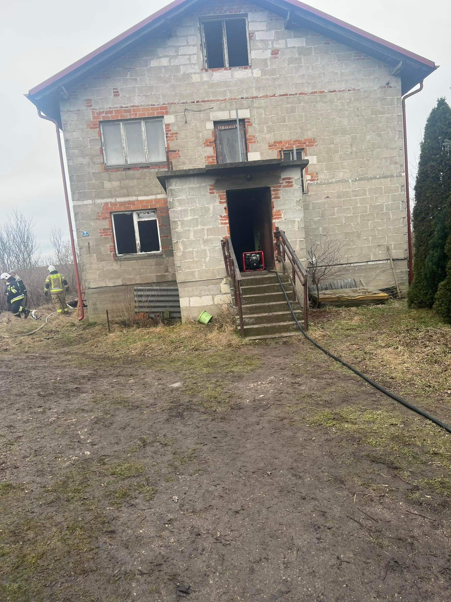 Po przybyciu na miejsce zdarzenia pierwszych zastępów Straży Pożarnej zastano silne zadymienie w budynku mieszkalnym jednorodzinnym.