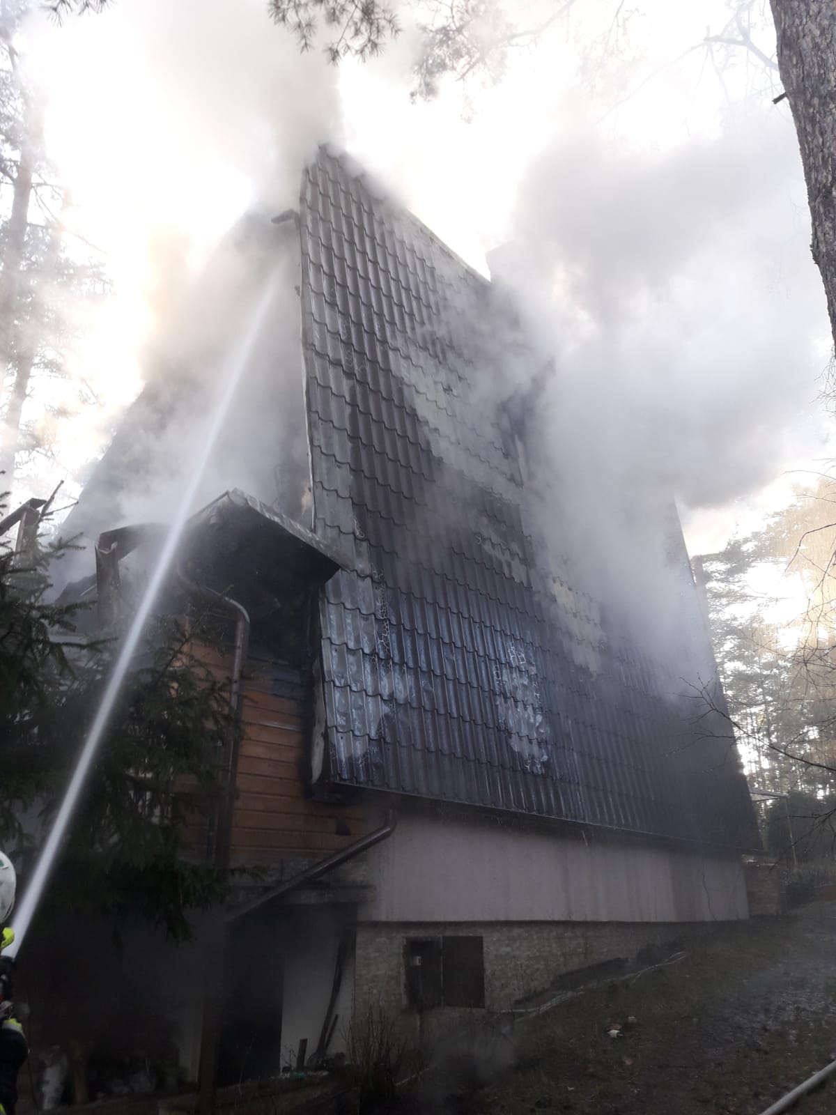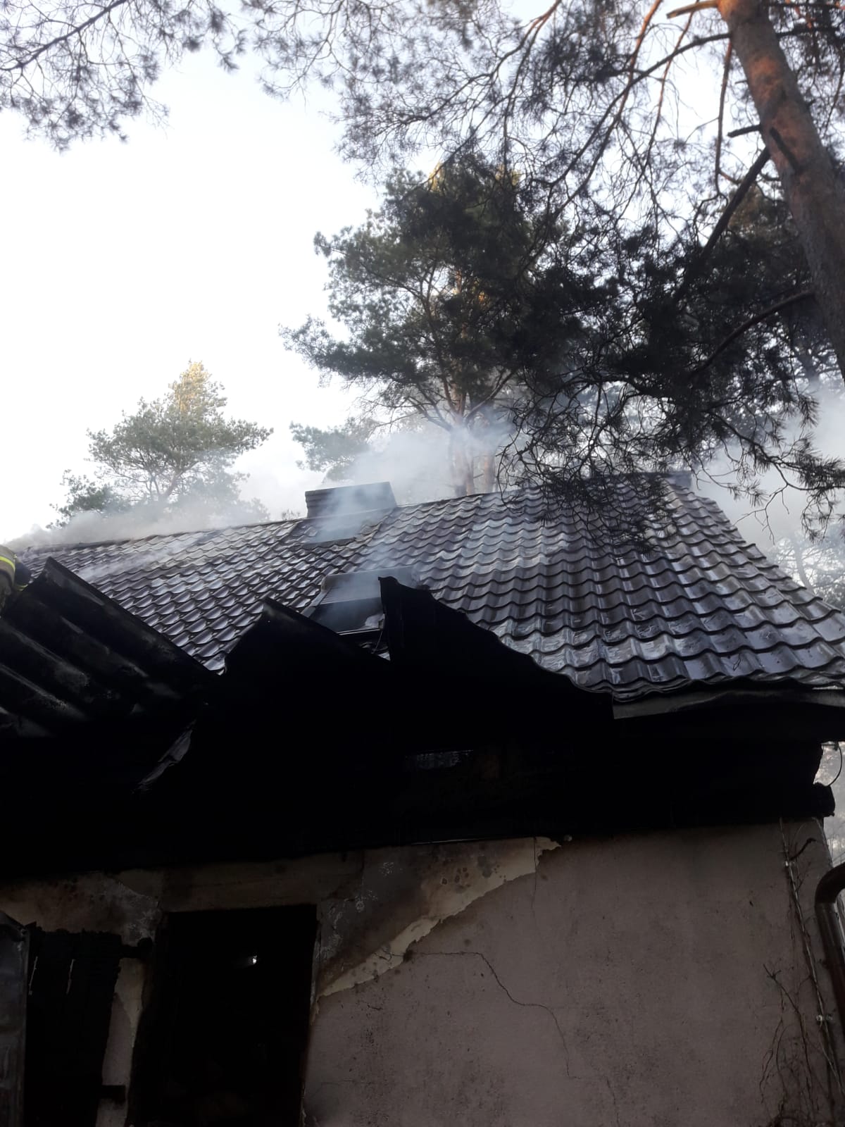 Do zdarzenia natychmiast zostały zadysponowane zastępy OSP Lipusz, OSP Łubiana oraz zastępy z JRG w Kościerzynie. Łącznie 5 zastępów. Po przybyciu na miejsce zdarzenia kierujący działaniem ratowniczym zastał palący się domek letniskowy konstrukcji drewnianej. Źródło pożaru zlokalizowane było w kalenicy dachu co dodatkowo utrudniało działania.
