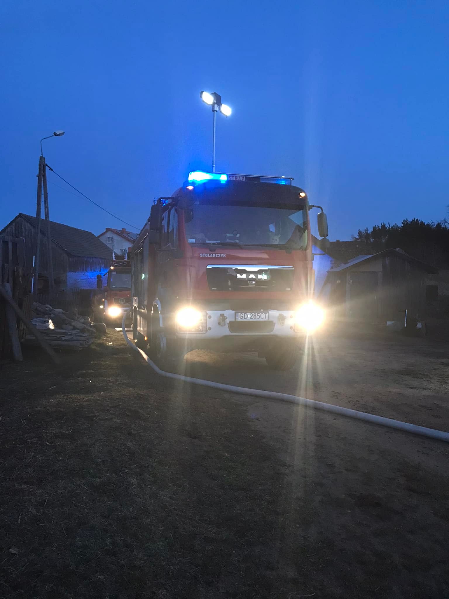 10 kwietnia 2022 roku o godzinie 19:39 dyżurny stanowiska kierowania Komendanta Powiatowego PSP w Kościerzynie otrzymał zgłoszenie o pożaru domu typu bliźniak. Na miejsce zadysponowano niezwłocznie siedem zastępów straży pożarnej.
