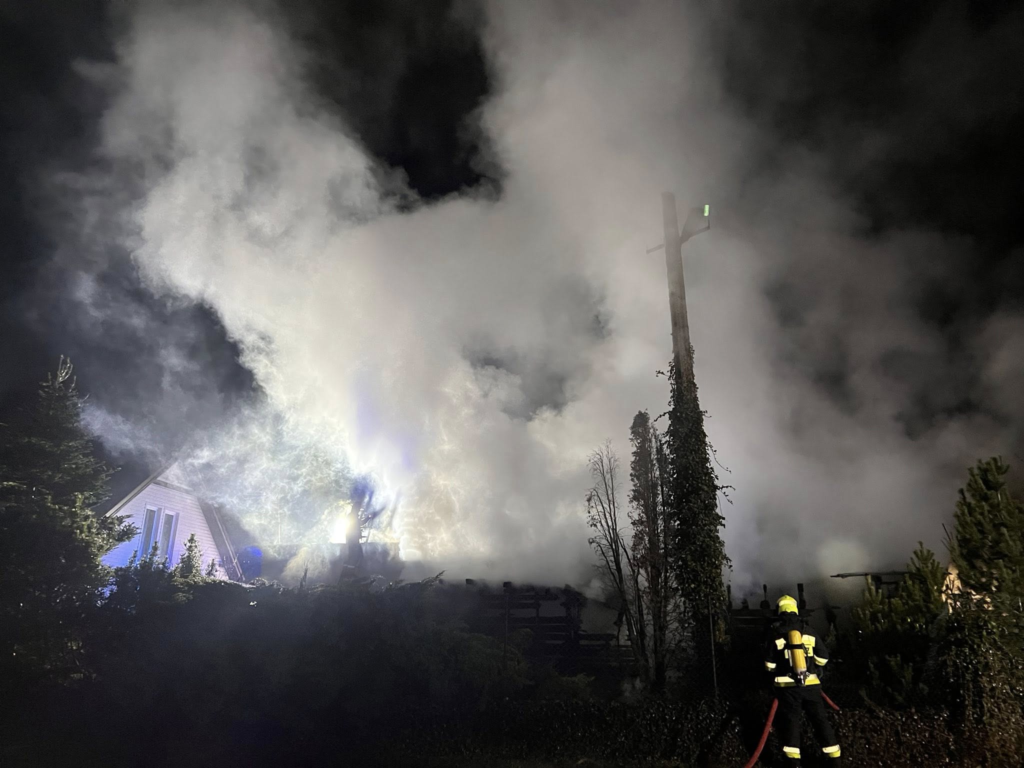 Po przybyciu na miejsce zdarzenia strażaków zastano pożar drewnianego budynku gospodarczego, a bezpośrednio zagrożony przez ogień był dom mieszkalny.