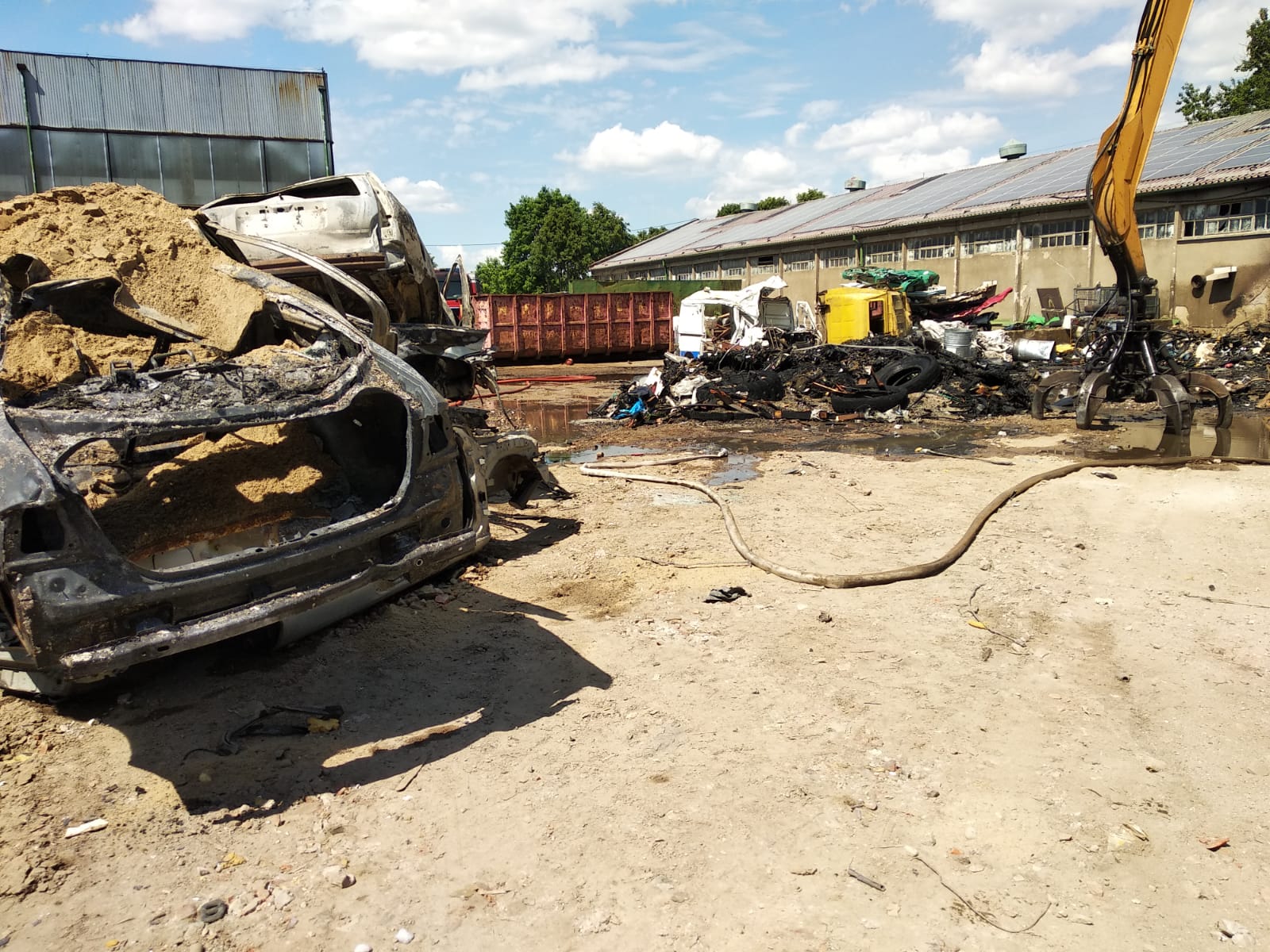 Do zdarzenia natychmiast zostało zadysponowanych 6 zastępy straży pożarnej. Po przybyciu na miejsce zdarzenia kierujący działaniem ratowniczym zastał pożar składowiska wraków pojazdów osobowych.