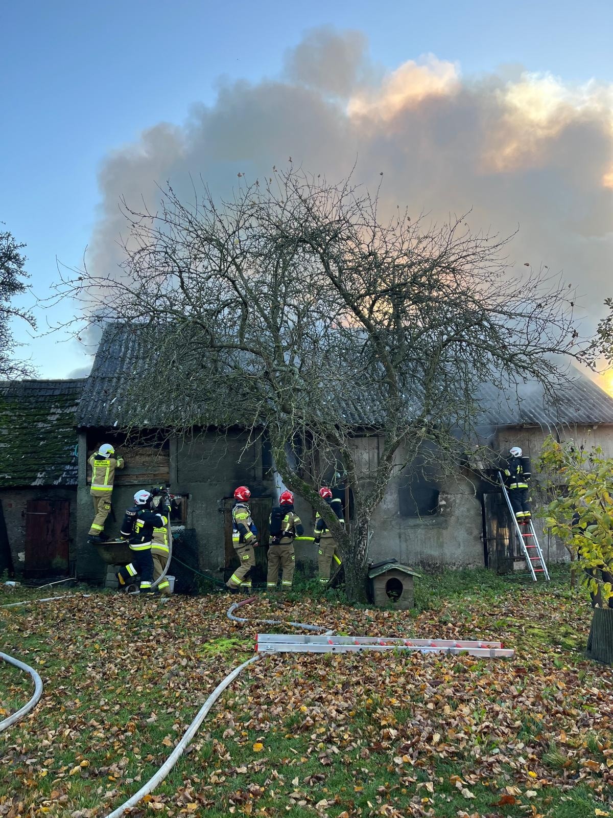 Na miejsce zdarzenia niezwłocznie zadysponowano zastępy straży pożarnej z JRG Kościerzyna, OSP Wielki Klincz, OSP Kłobuczyno, OSP Dobrogoszcz, OSP Nowa Karczma.