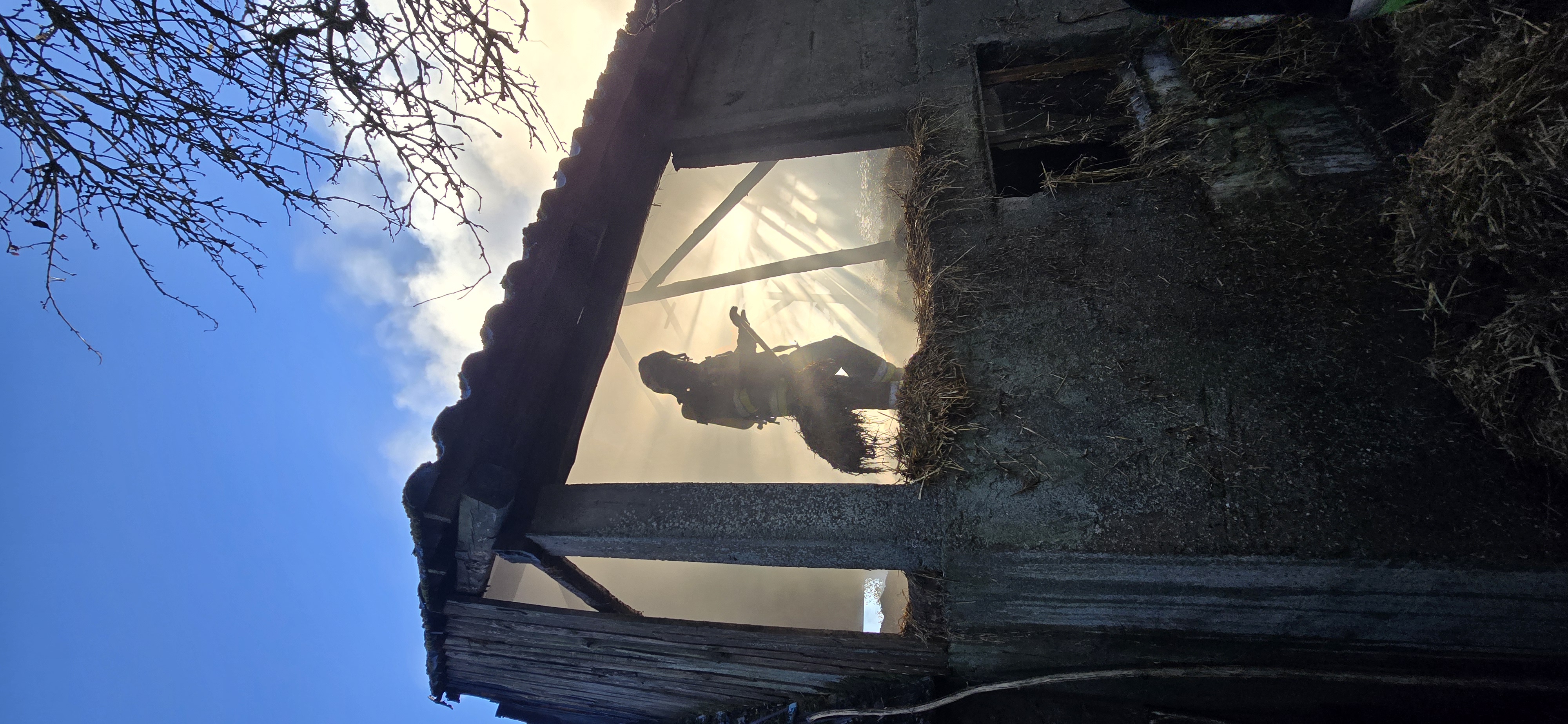 Po przybyciu na miejsce zdarzenia zastępów jednostek ochrony przeciwpożarowej zastano pożar stodoły wypełnionej słomą na poddaszu.