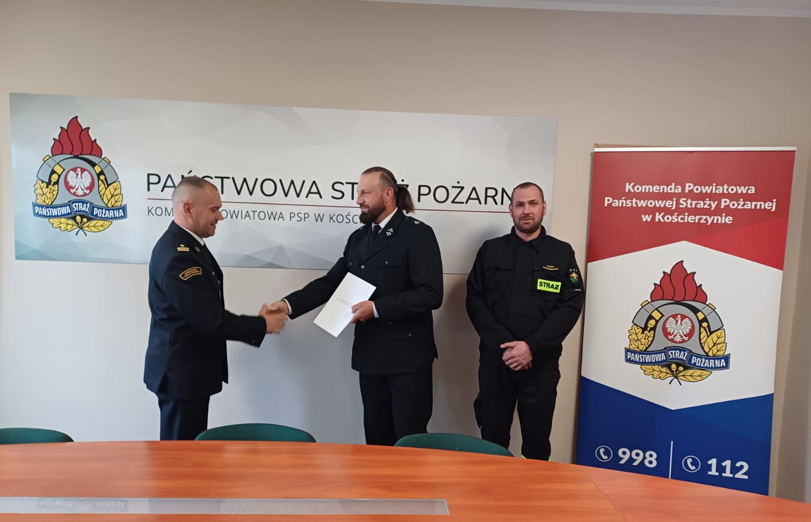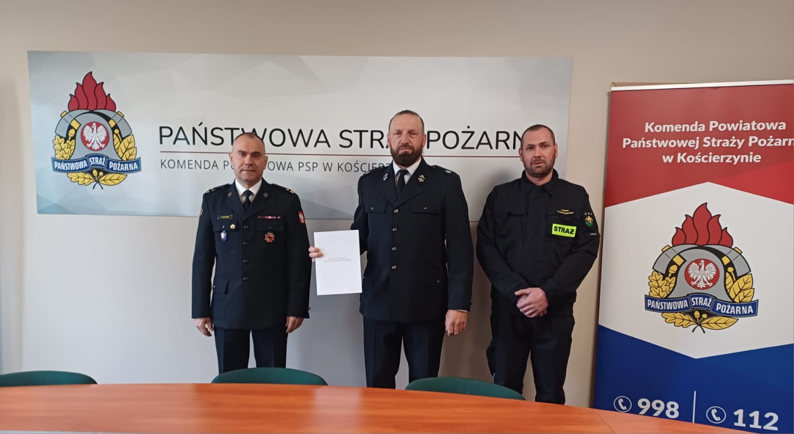 30 maja 2025r. w siedzibie Komendy Powiatowej Państwowej Straży Pożarnej w Kościerzynie, Komendant Powiatowy PSP mł. bryg. Rafał Duzowski wręczył promesę dla Ochotniczej Straży Pożarnej w Lubaniu na zakup nowego samochodu ratowniczo-gaśniczego.