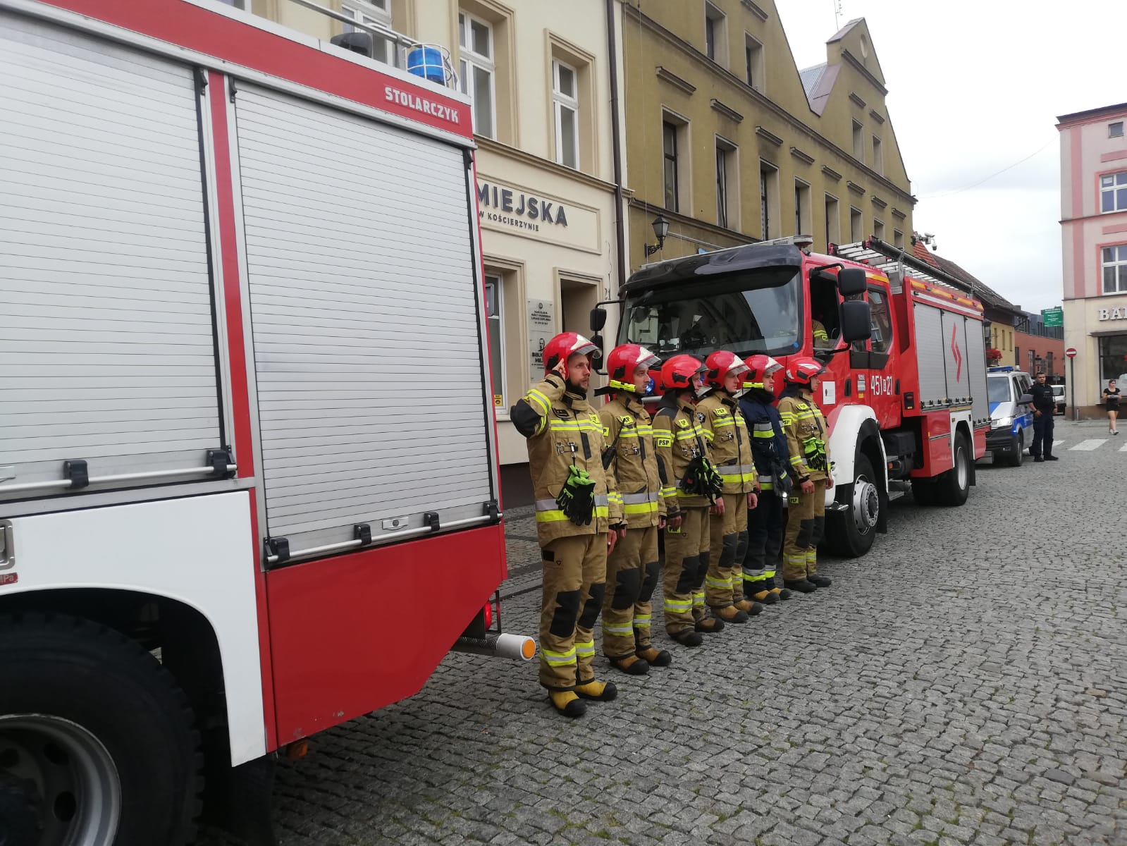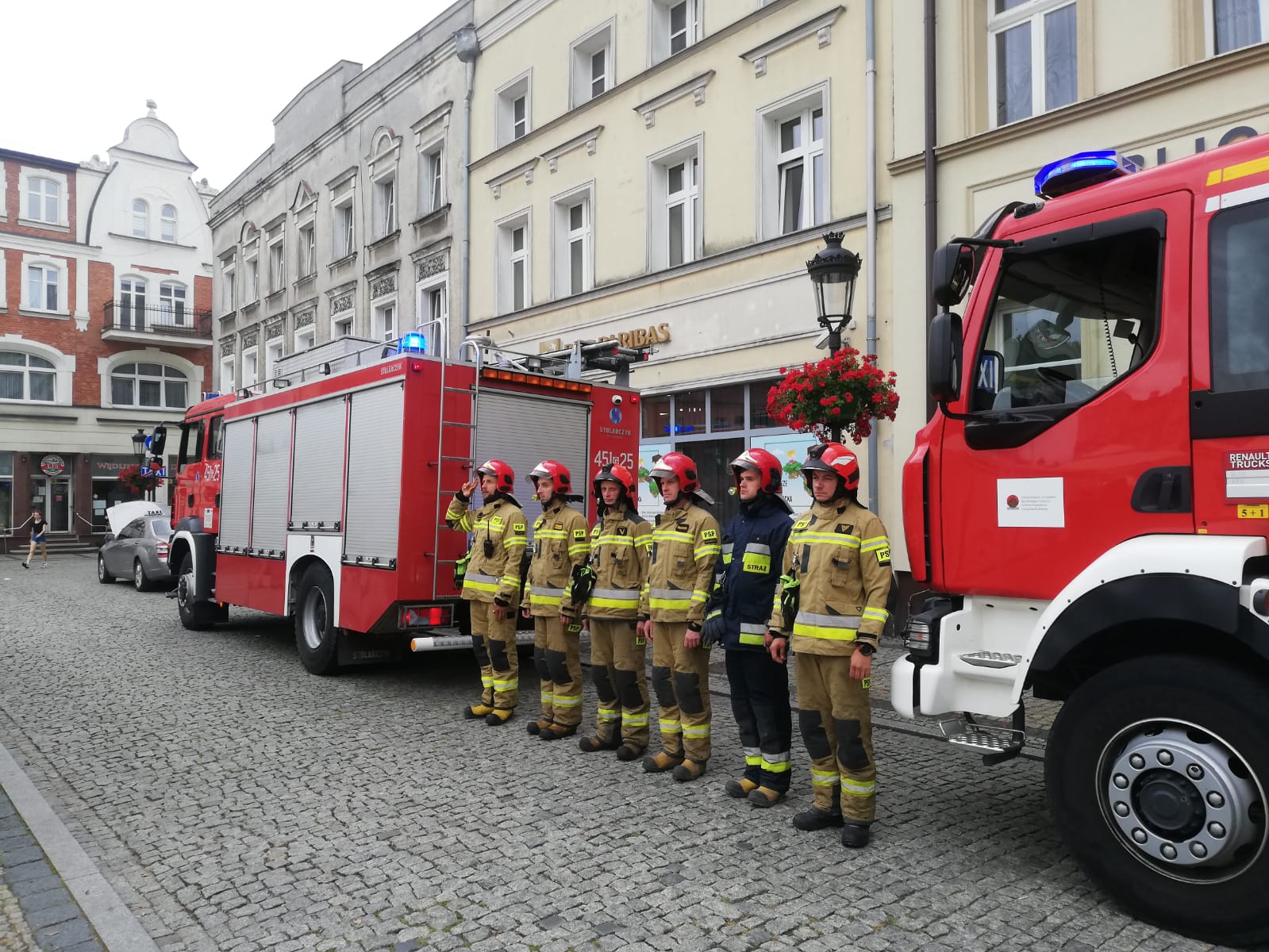 Strażacy KP PSP Kościerzyna w dniu 1 sierpnia 2021 r. uczcili 77. Rocznicę Wybuchu Powstania Warszawskiego. Punktualnie o godzinie 17:00 na kościerskim rynku włączono w samochodach JRG Kościerzyna sygnały błyskowe oraz dźwiękowe.