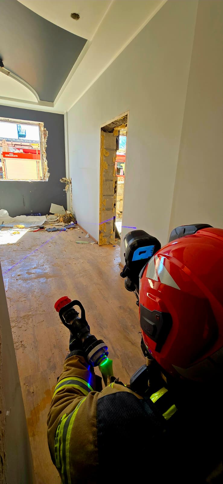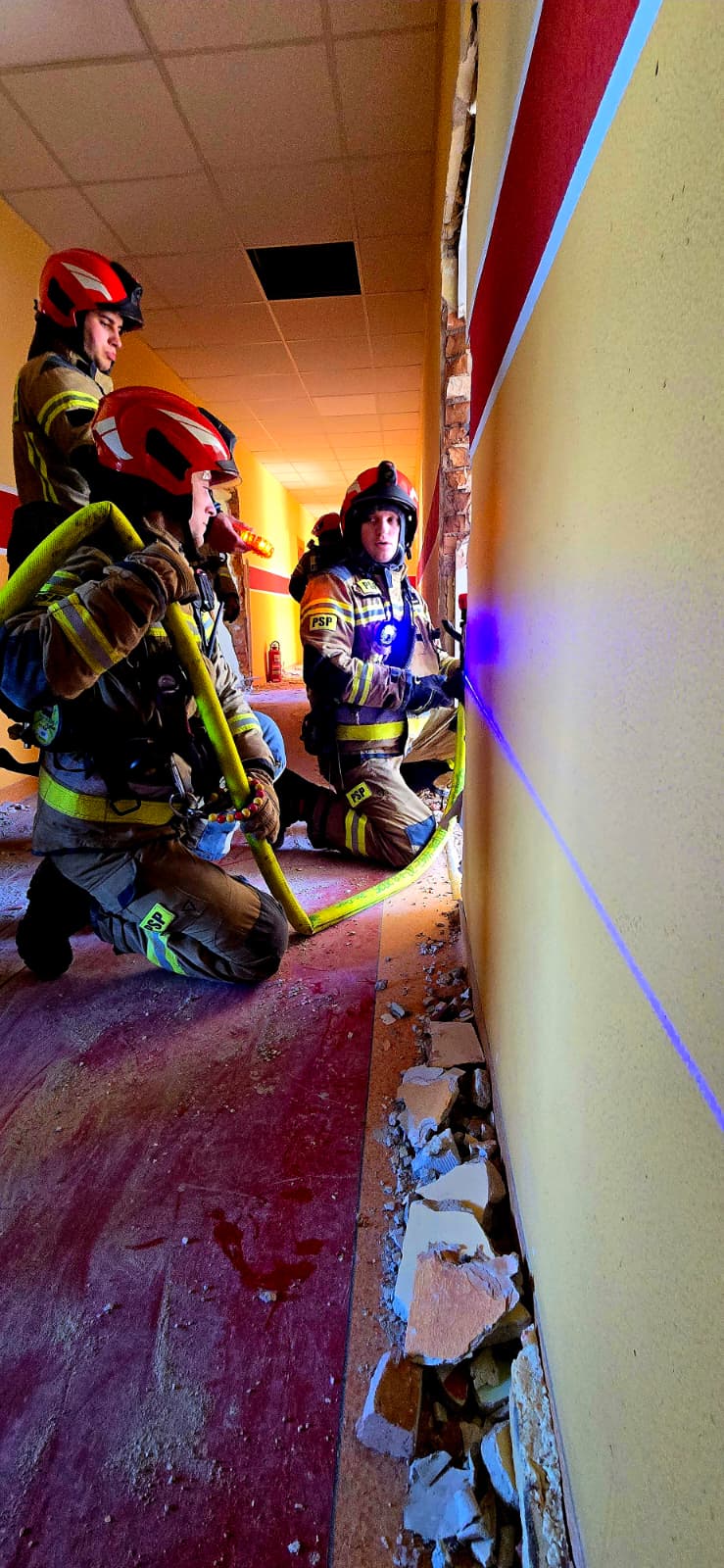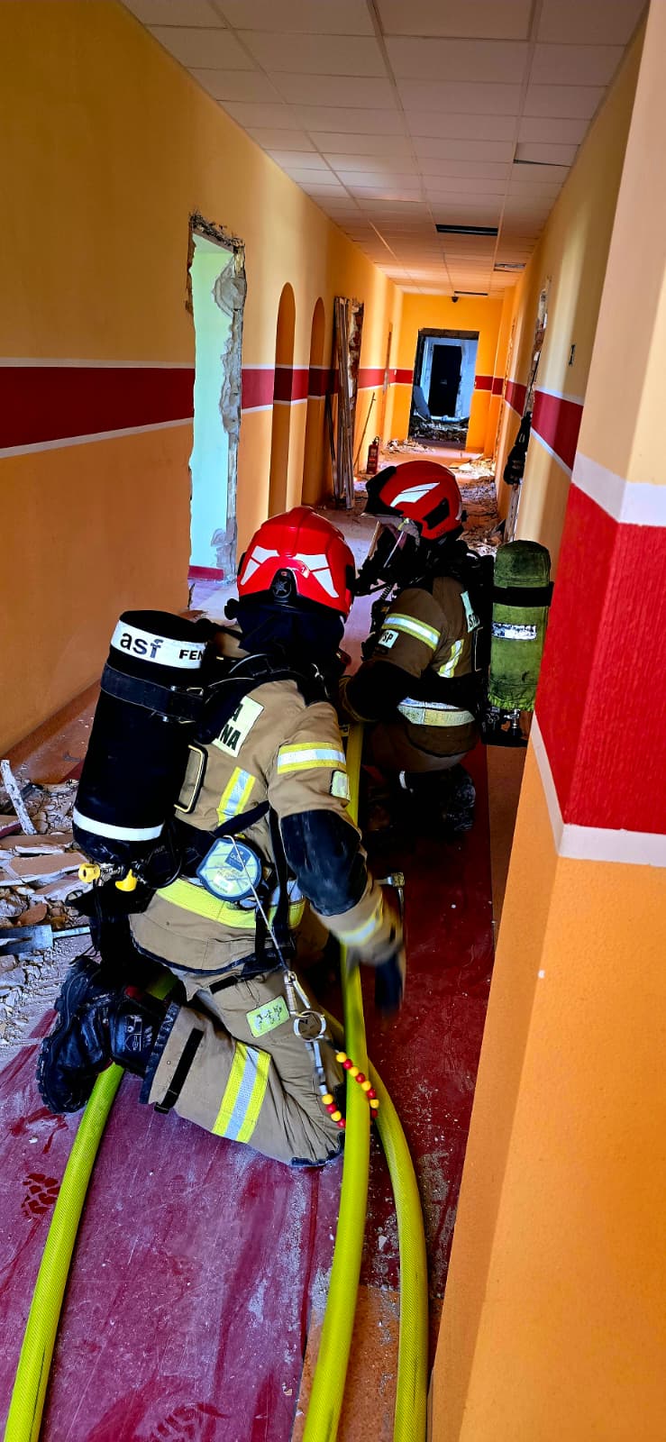 Zwieńczeniem każdego dnia były ćwiczenia obejmujące wszystkie elementy szkolenia. Scenariusz zakładał pożar opuszczonego, wielkopowierzchniowego budynku z osobami poszkodowanymi.