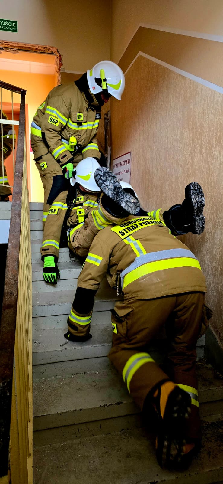 - ewakuację poszkodowanego strażaka ze strefy zagrożenia.