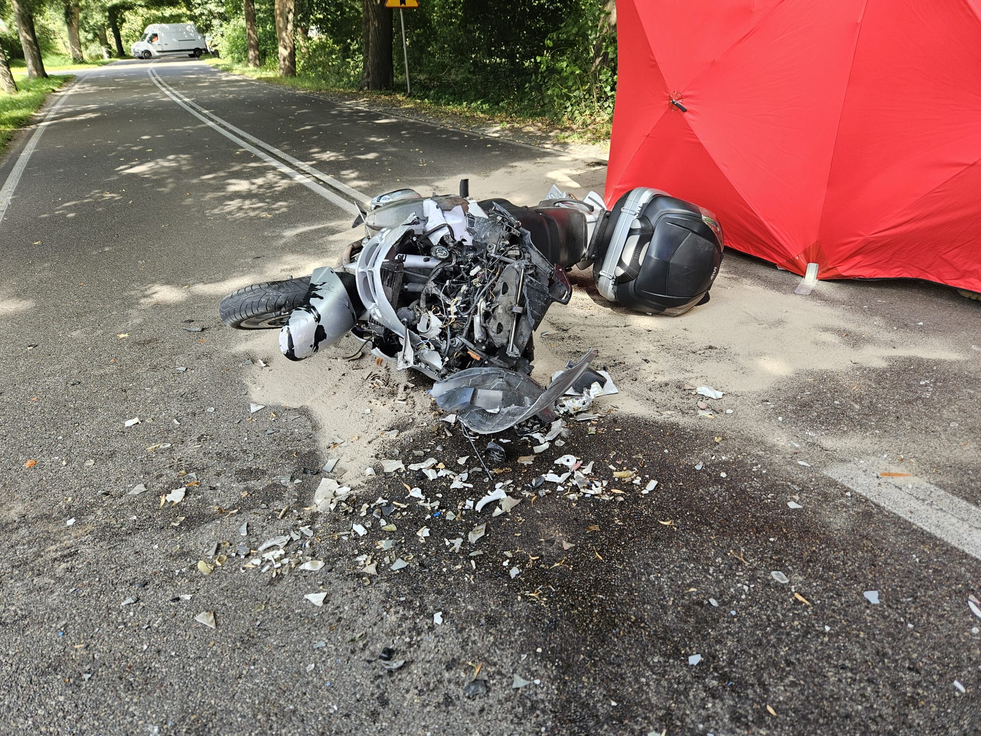 Po przybyciu na miejsce strażacy zastali motocykl marki BMW znajdujący się na pasie ruchu oraz samochód dostawczy marki Mercedes na poboczu drogi. Strażacy natychmiast przystąpili do resuscytacji krążeniowo–oddechowej kierującego motocyklem, który nie wykazywał oznak życia. Niestety, w wyniku odniesionych obrażeń, mimo podjętych czynności ratunkowych, mężczyzna poniósł śmierć.