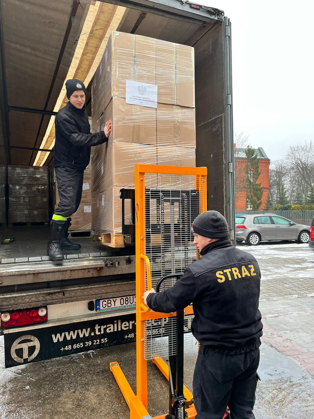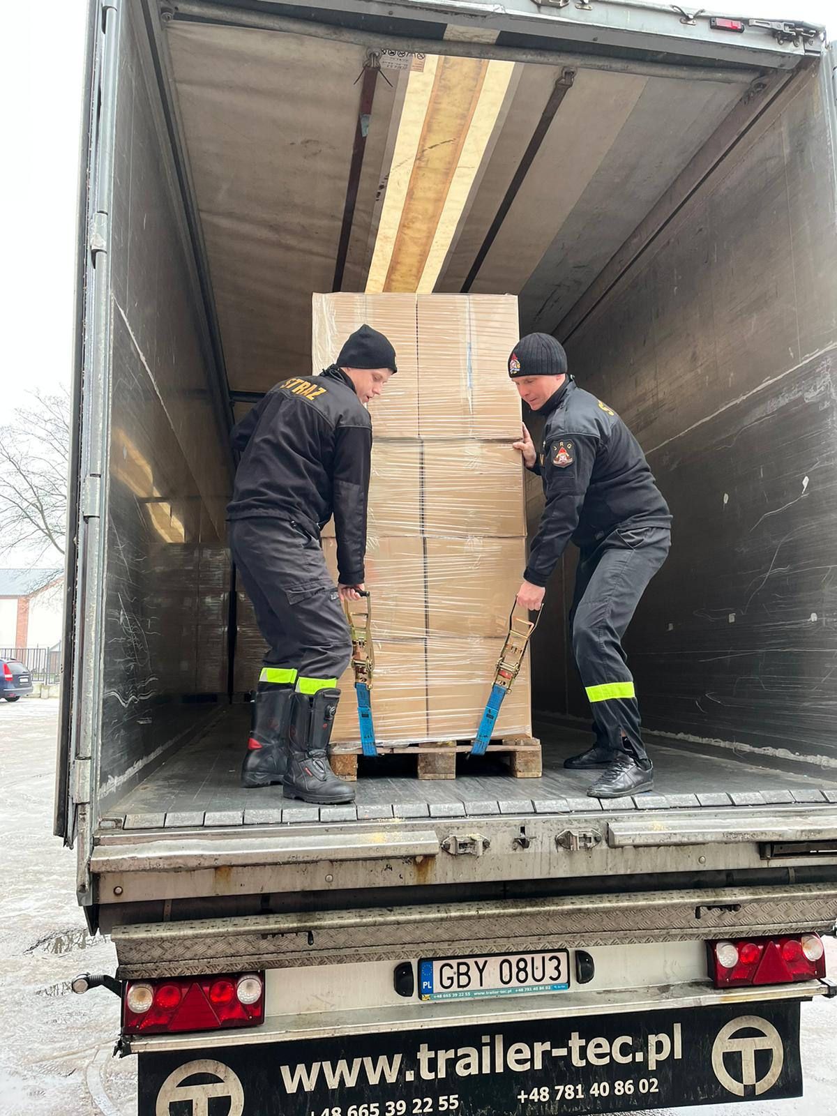 W rozładunku czynnie brali udział Funkcjonariusze Komendy Powiatowej Państwowej Straży Pożarnej w Kościerzynie oraz pracownicy Zarządzania Kryzysowego Starostwa Powiatowego w Kościerzynie.