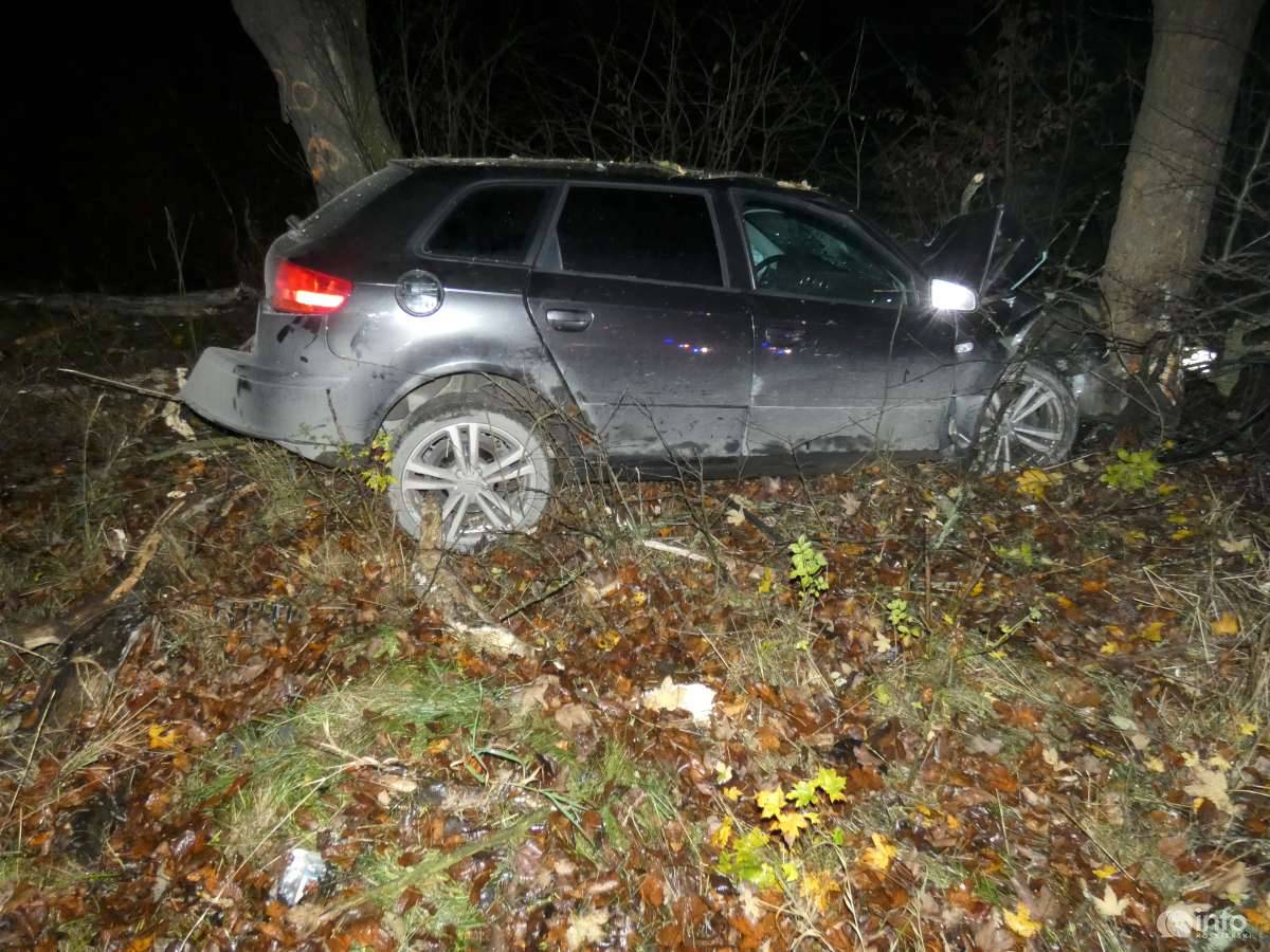 Przybyły na miejsce kierujący działaniami ratowniczymi zastał samochód osobowy po uderzeniu czołowym w drzewo.