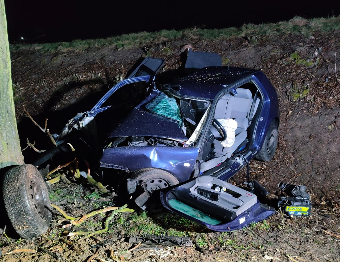 16 kwietnia o godzinie 02:56 do dyżurnego Stanowiska Kierowania Komendanta Powiatowego PSP w Kościerzynie wpłynęło zgłoszenie ze Stanowiska Kierowania Komendanta Powiatowego PSP w Chojnicach o wypadku drogowym przy granicy powiatów kościerskiego i chojnickiego.