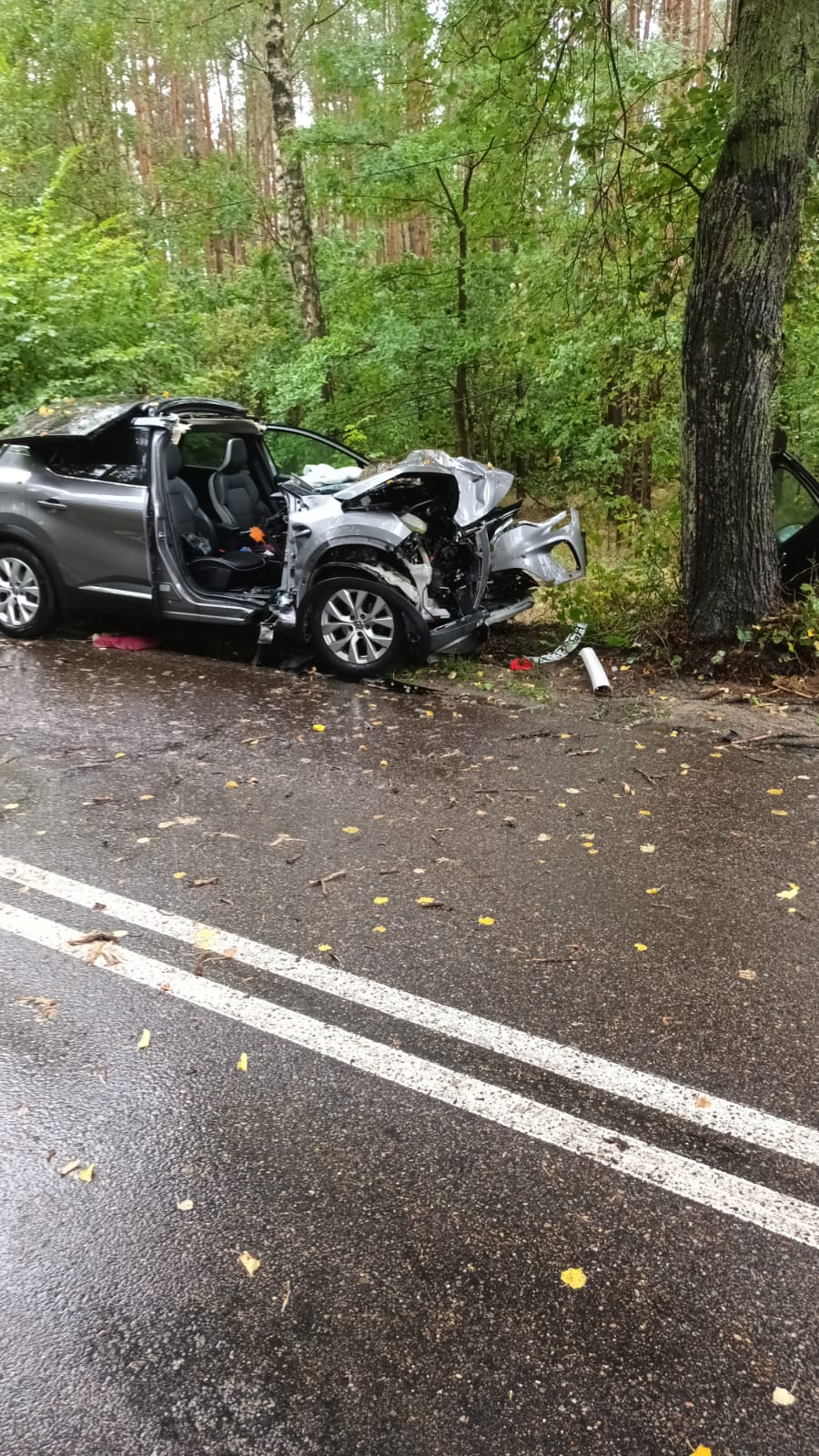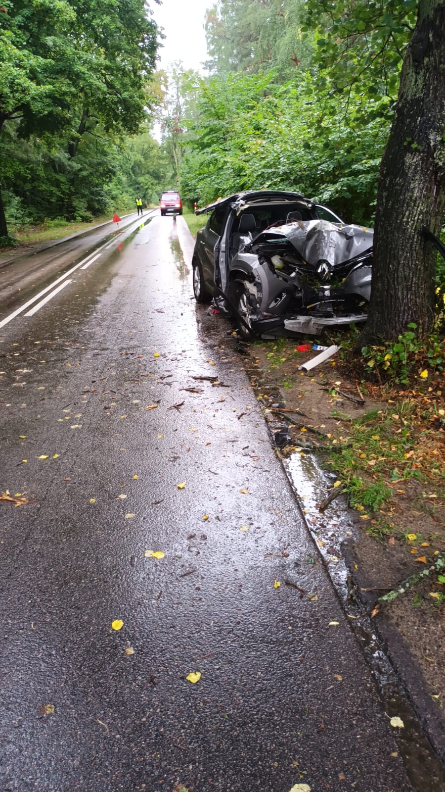 Według zgłoszenia kierowca samochodu osobowego uderzył w przydrożne drzewo.