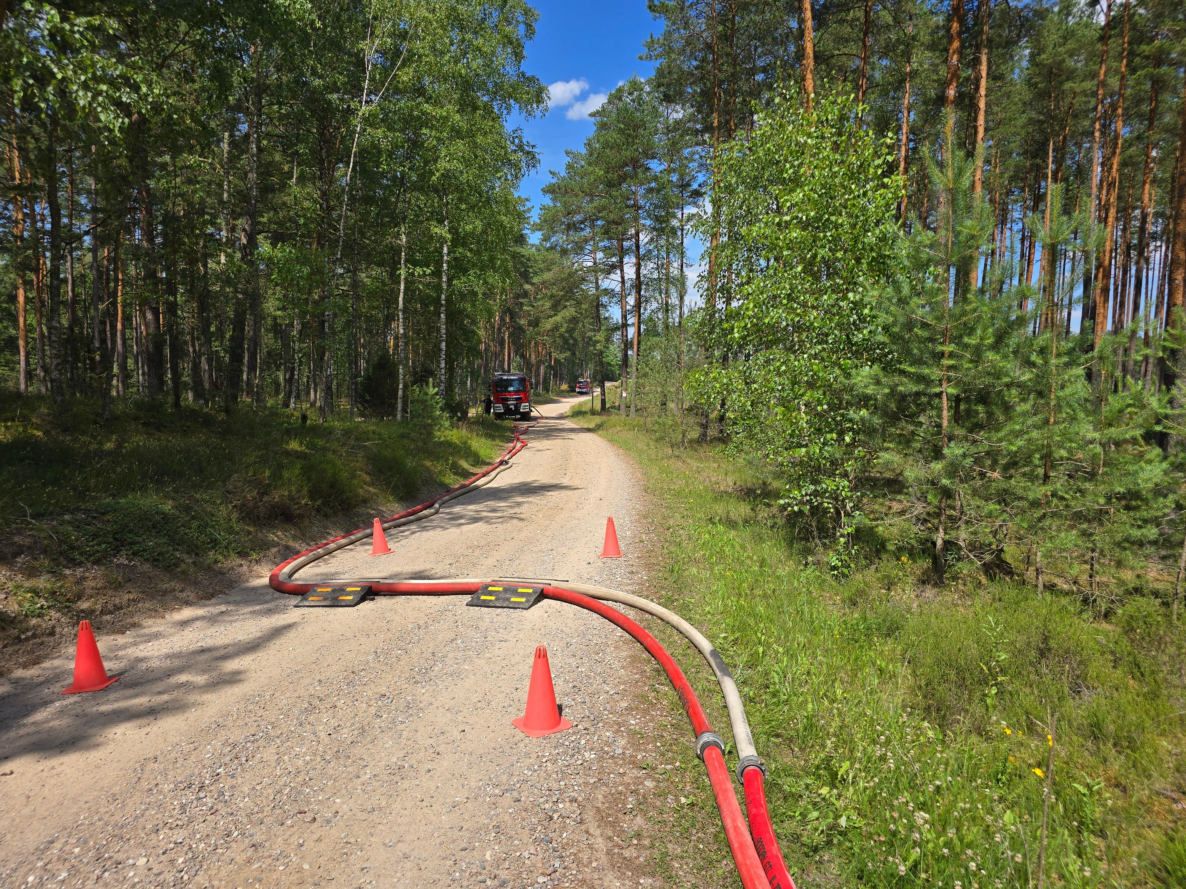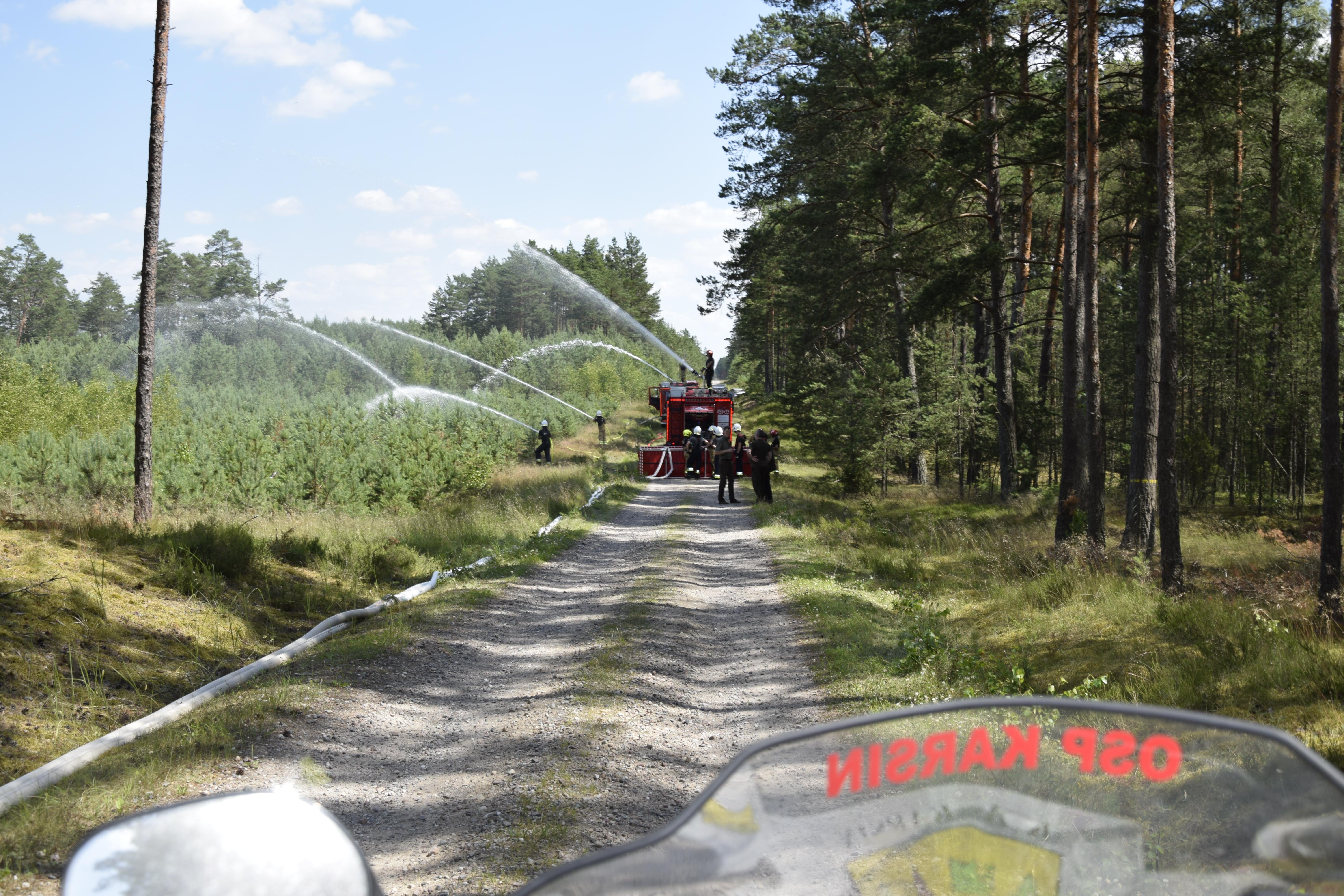 Podczas ćwiczeń zbudowano dwie magistrale wodne na długości około 1,5 km o łącznej wydajności wodnej około 4000 litrów na minutę.