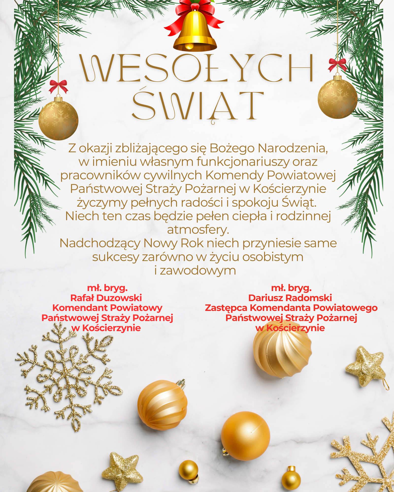 Życzenia Bożonarodzeniowe i Noworoczne kierownictwa Komendy Powiatowej Państwowej Straży Pożarnej w Kościerzynie