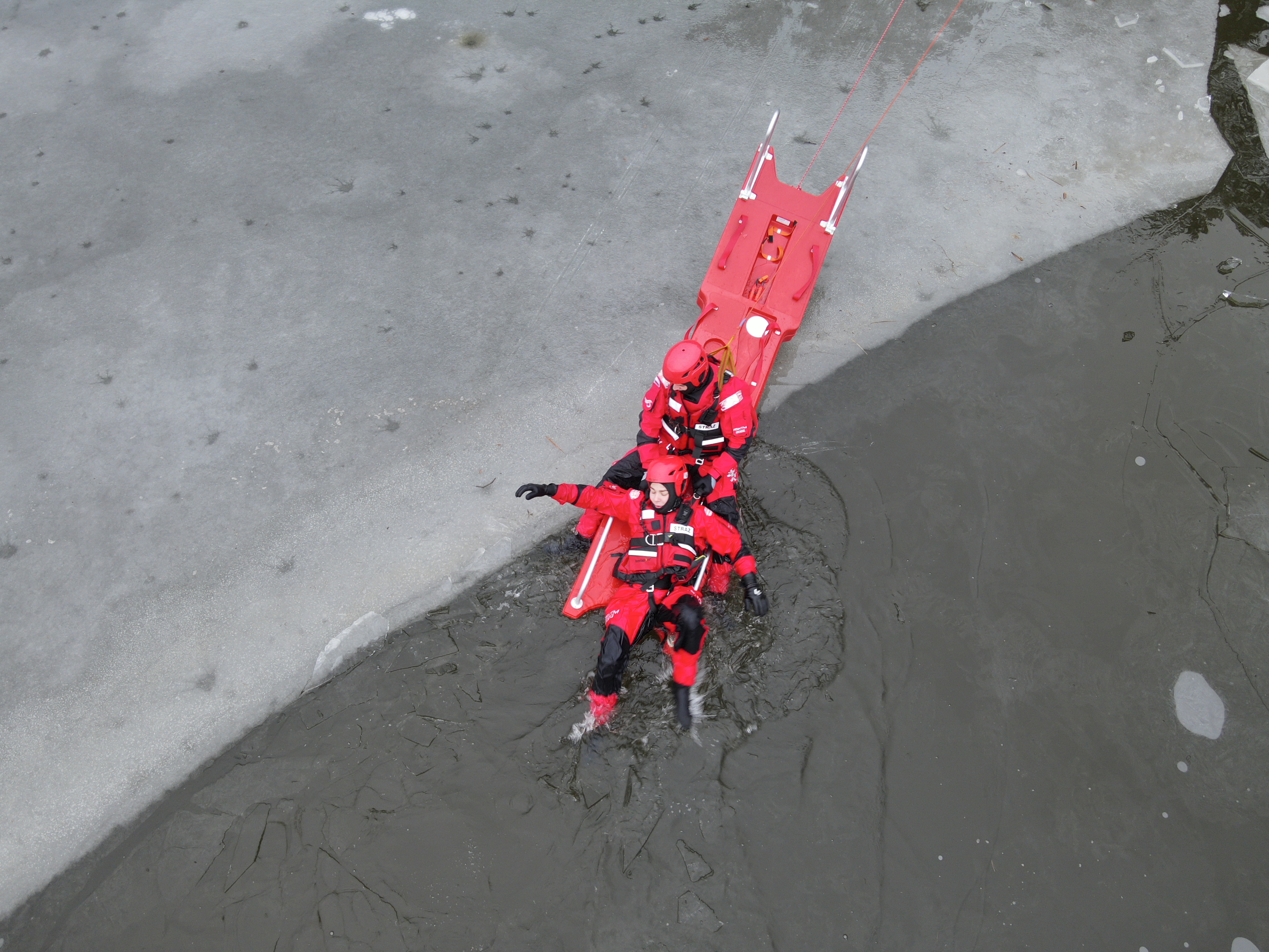 - samoratowanie się strażaków, pod którymi załamał się lód;
