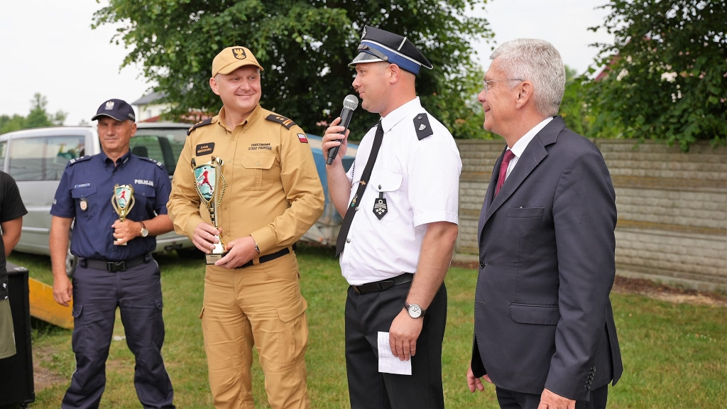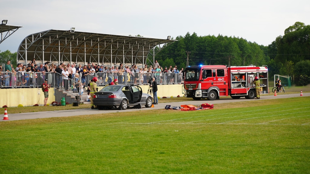 Po wręczeniu pucharów odbył się pokaz ratownictwa technicznego oraz próba gaszenia wodą palącego się oleju.