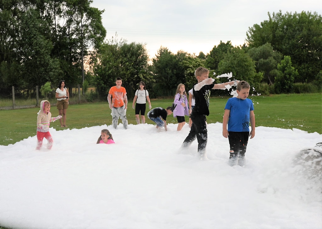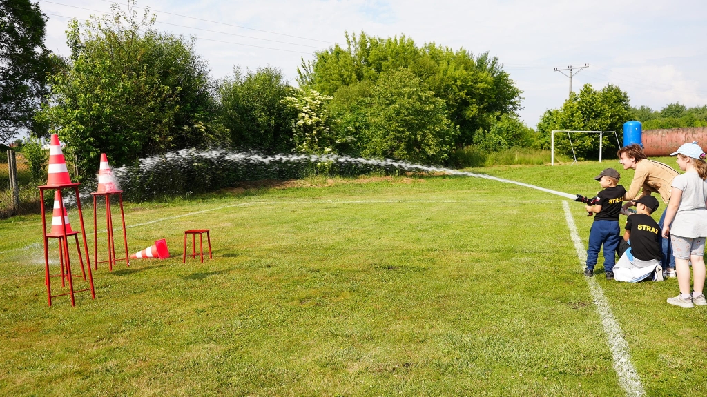 Przygotowano również mnóstwo atrakcji dla dzieci: przejazdy quadem, zabawę w pianie, szukanie ukrytego misia w zadymionym namiocie, strącanie pachołków wodą z prądownicy, gry i zabawy.