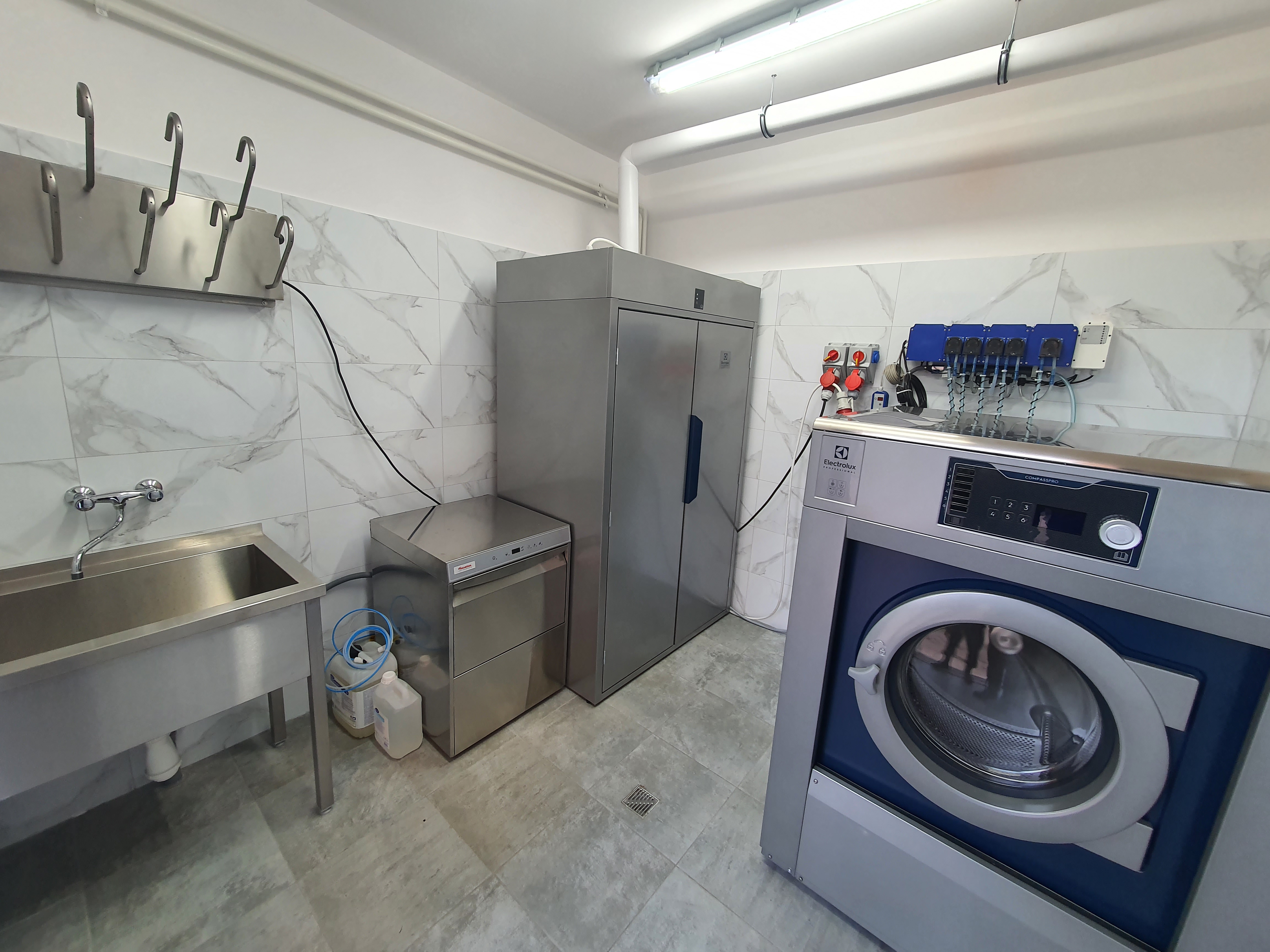 - Pralnicę i suszarkę do odzieży specjalnej. Dzięki nowemu urządzeniu poprawi się bezpieczeństwo ratowników nie tylko ze względu na możliwość usuwania szkodliwych substancji z ubrań specjalnych ale także ich impregnacji. Dezynfekcja ubrań strażaków w pralnicy usuwa z tych ubrań szkodliwe dla zdrowia, również rakotwórcze substancje zawarte w dymie pożarowym.