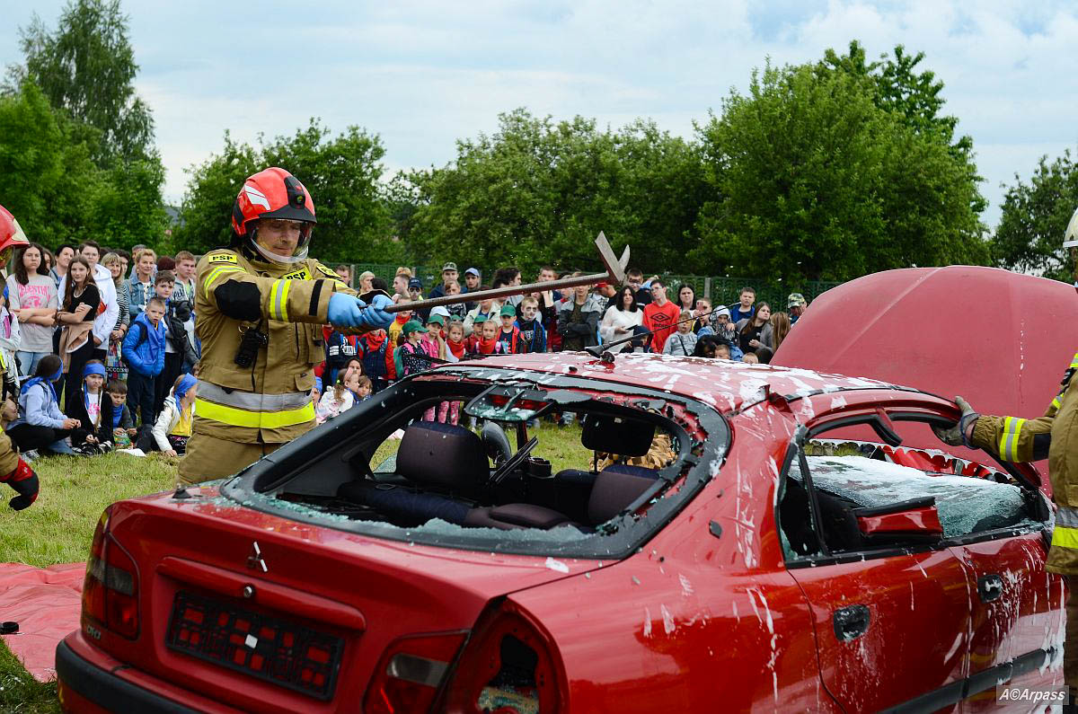 Wydarzenie zorganizowane pod hasłem „HusarR i Enea Wytwarzanie razem dla bezpiecznych wakacji” obfitowało w wiele atrakcji. Jedną z nich był pokaz jak zachować się i przede wszystkim zareagować żeby pomóc ludziom, którzy ponieśli szkodę w wypadku komunikacyjnym wykonany przez naszych funkcjonariuszy.