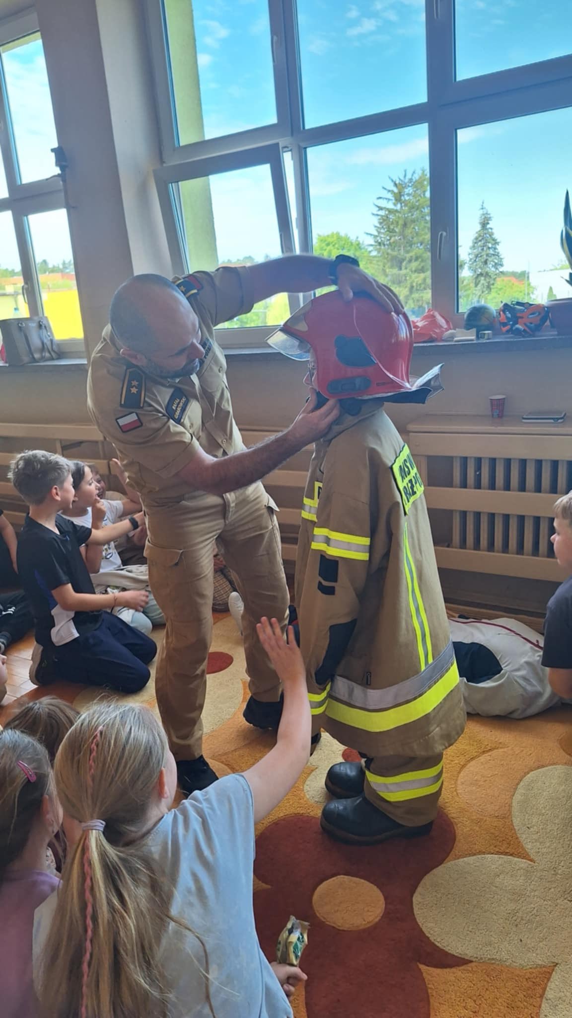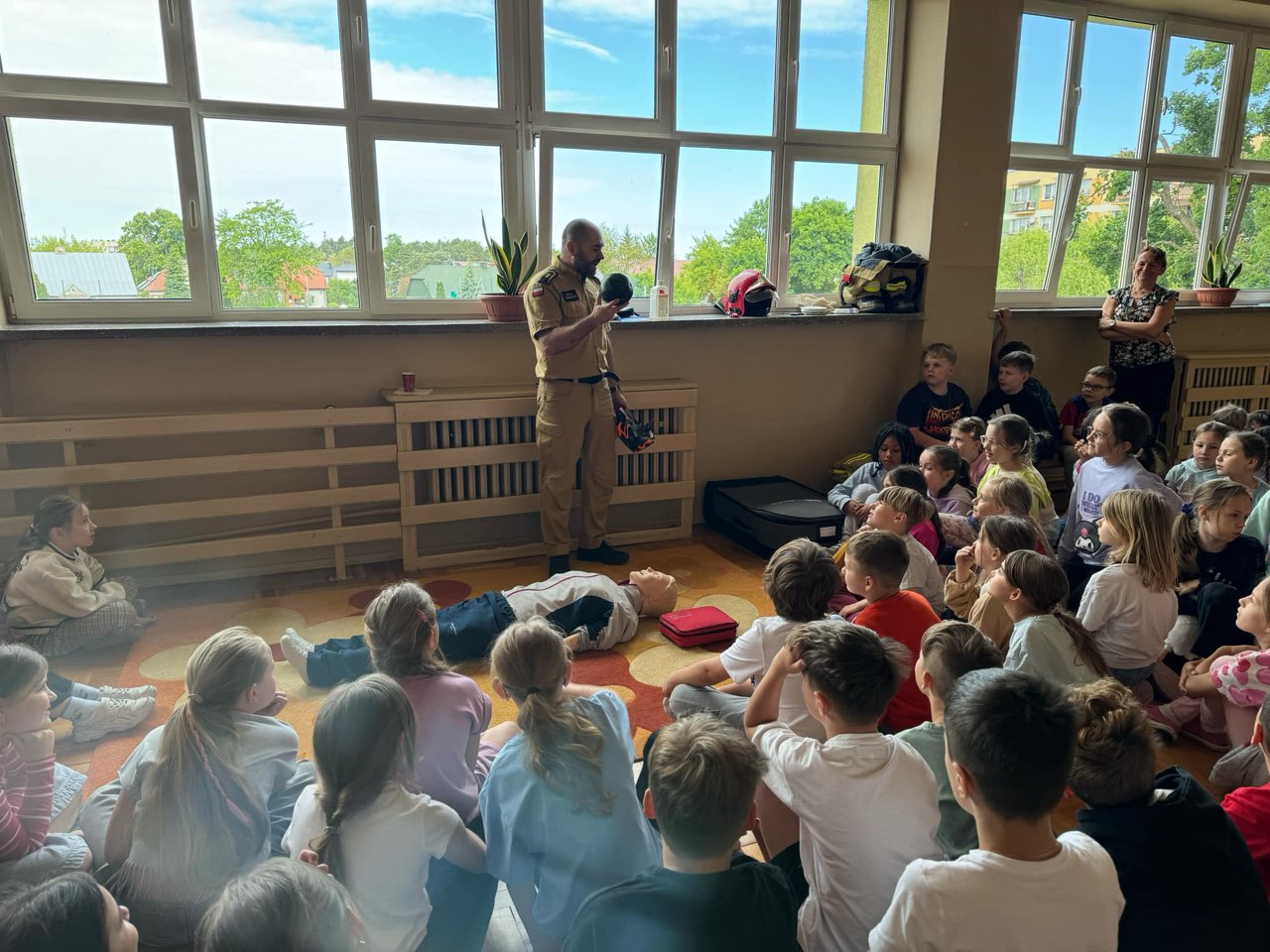 28 maja 2025 r. Komenda Powiatowa Państwowej Straży Pożarnej w Kozienicach na terenie Szkoły Podstawowej nr 1 w Kozienicach wzięła udział w akcji informacyjno – edukacyjnej dla dzieci „Bezpieczny uczeń”.