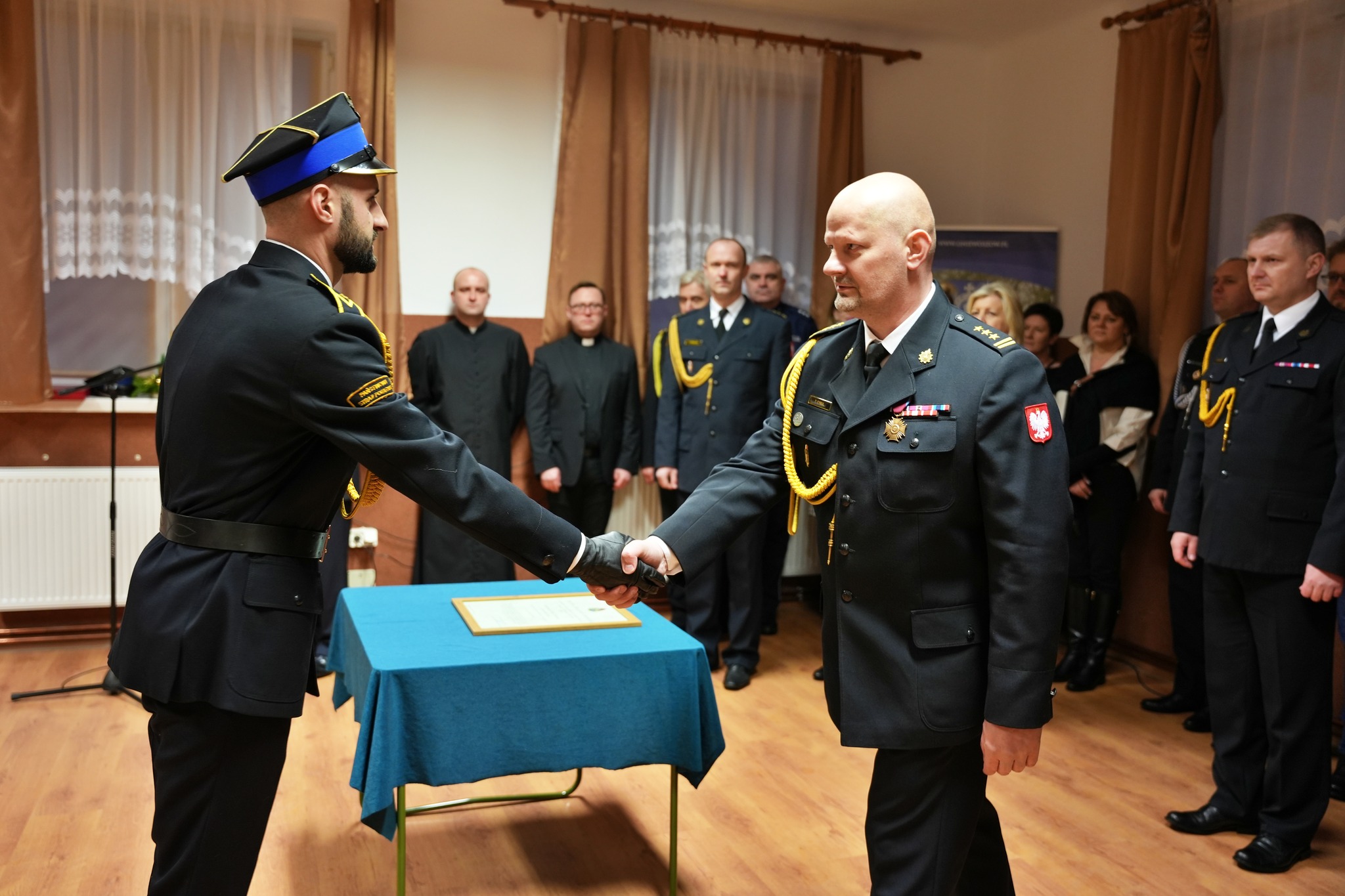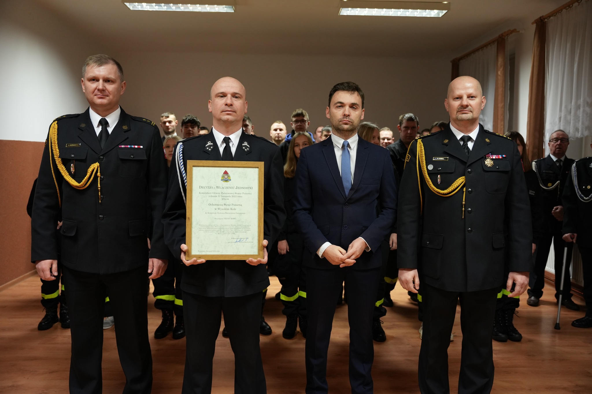 Po przywitaniu przybyłych gości, nastąpiło uroczyste wręczenie Decyzji Komendanta Głównego PSP o włączeniu jednostki do KSRG, którą na ręce Prezesa OSP, przekazali: Zastępca Mazowieckiego Komendanta Wojewódzkiego PSP st. bryg. Tomasz Cybul oraz Komendant Powiatowy PSP w Kozienicach bryg. Kamil Bieńkowski.