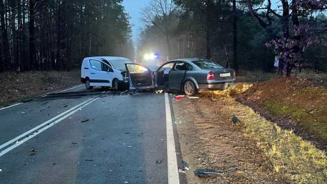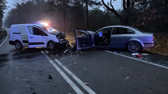 Po przyjeździe Straży Pożarnej na miejsce zdarzenia stwierdzono, zderzenie czołowe samochodów osobowych w wyniku którego obydwa pozostały na kołach na jezdni blokując ruch pojazdów w obu kierunkach. W wyniku zdarzenia pięć osób odniosło obrażenia ciała.