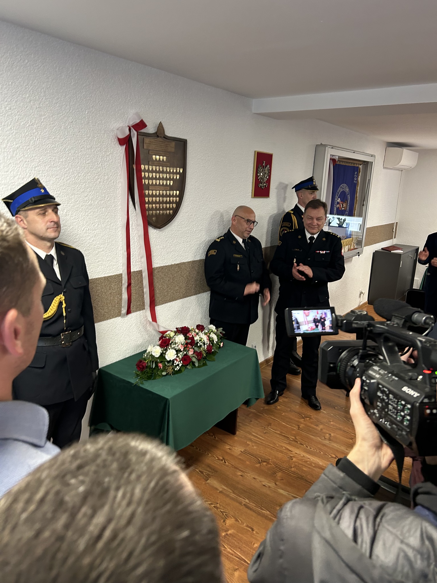 Najważniejszym punktem uroczystości było odsłonięcie pamiątkowej tablicy upamiętniającej fundatorów sztandaru dla Komendy Powiatowej Państwowej Straży Pożarnej w Krapkowicach.
