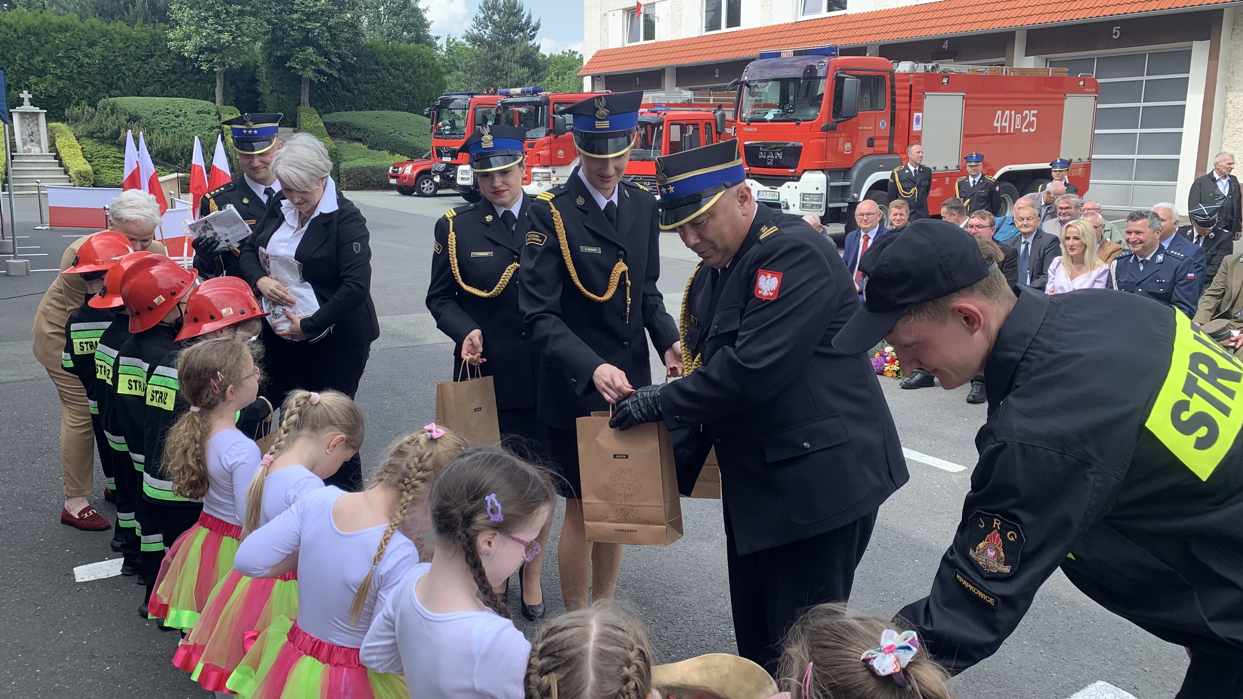 Po okolicznościowych przemówieniach przedszkolaki z Publicznego Przedszkola nr 3 w Gogolinie im. Karlika i Karolinki zaprezentowały zgromadzonym gościom krótki program artystyczny i przekazała serdeczne życzenia z okazji strażackiego święta.