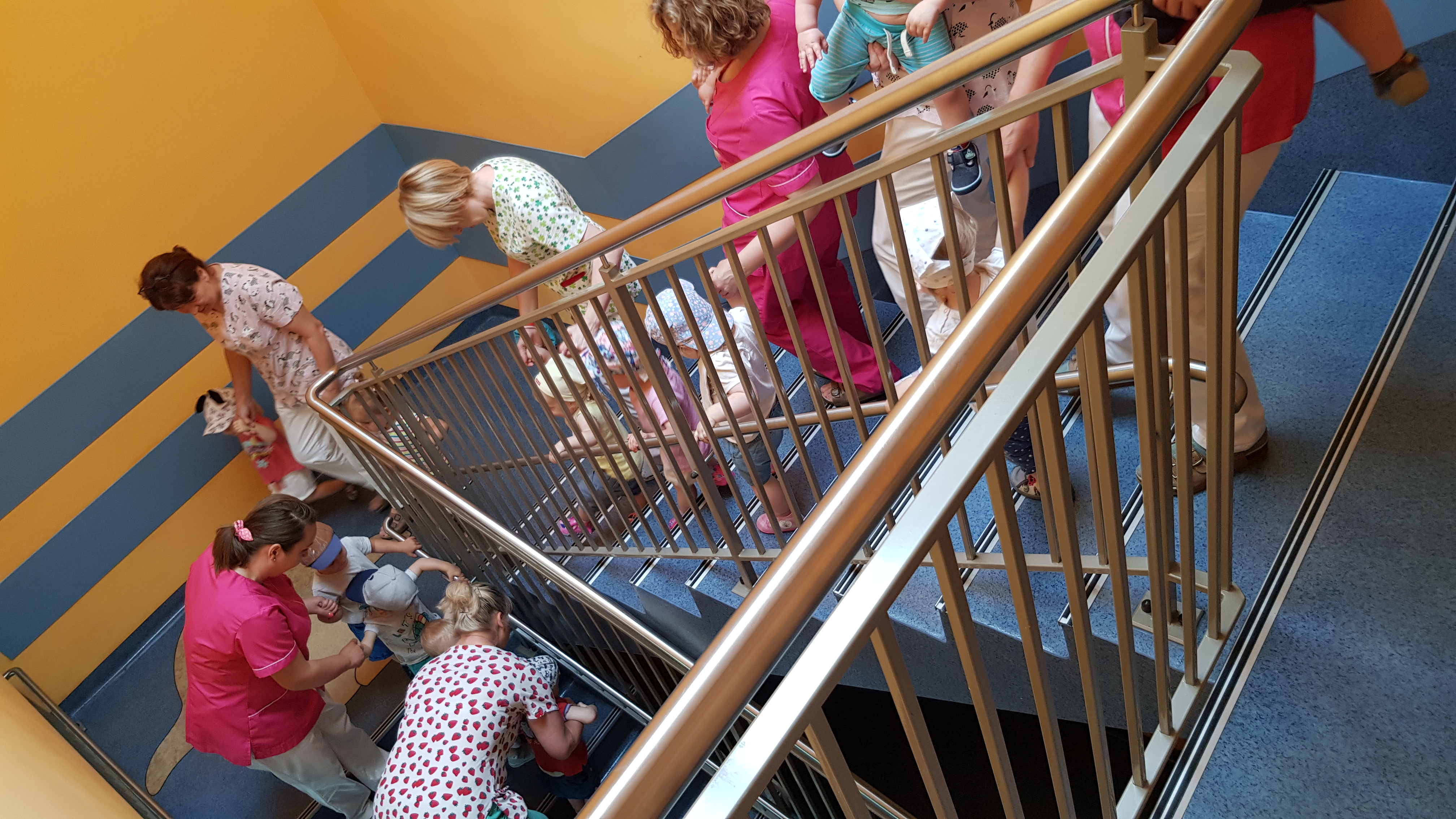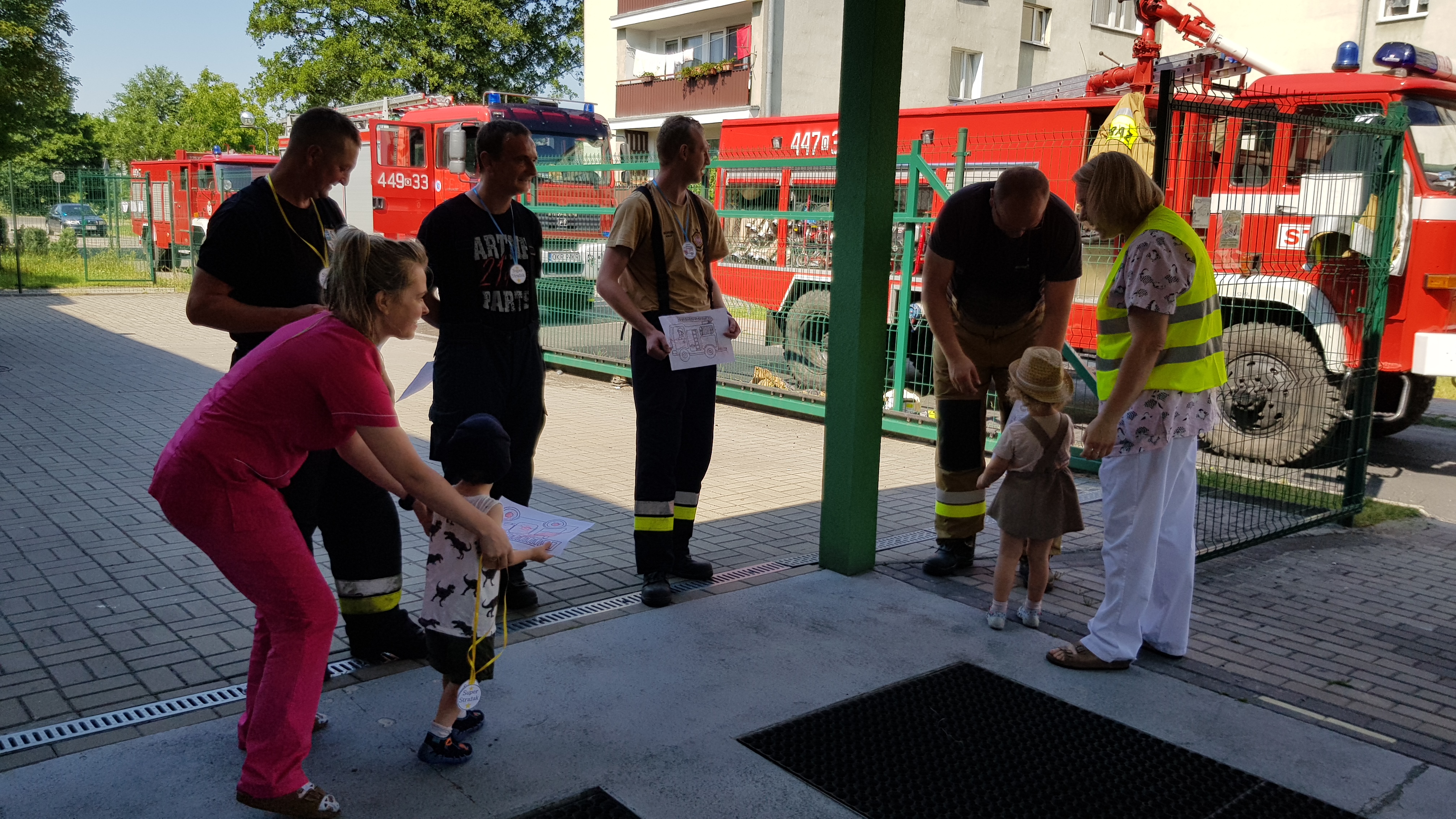 W taki sposób przedstawiały się ćwiczenia zorganizowane przez Dyrekcję Żłobka wraz z Komendą Powiatową PSP w Krapkowicach w Międzynarodowy Dzień Ewakuacji. Z tej okazji oprócz części praktycznej strażacy zaprezentowali podopiecznym żłobka posiadany sprzęt oraz zapoznali ich z charakterem pracy strażaka. Dodatkowo celem ochłody w upalny dzień rozłożono kurtynę wodną dzięki czemu dzieci miały super zabawę.