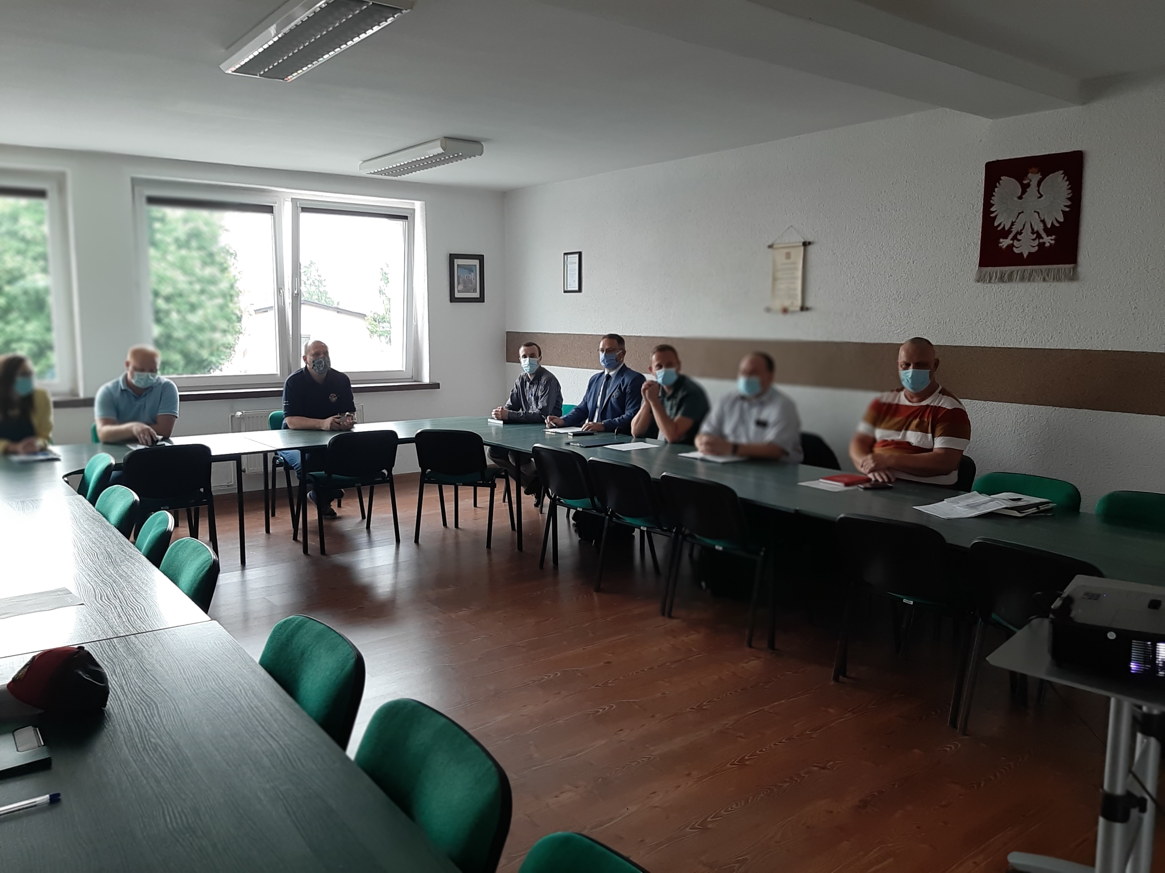 W trakcie spotkania st. bryg. Krzysztof Kuniec Komendant Powiatowy PSP w Krapkowicach oraz mł. bryg. Marian Wiatrowski naczelnik wydziału operacyjnego przedstawili także m.in. bieżące sprawy operacyjne, zasady udzielania dofinansowań i dotacji dla jednostek OSP, informacje nt. projektu „Ściana Pamięci” oraz rekomendacje do procesu organizacji szkoleń dla członków MDP.