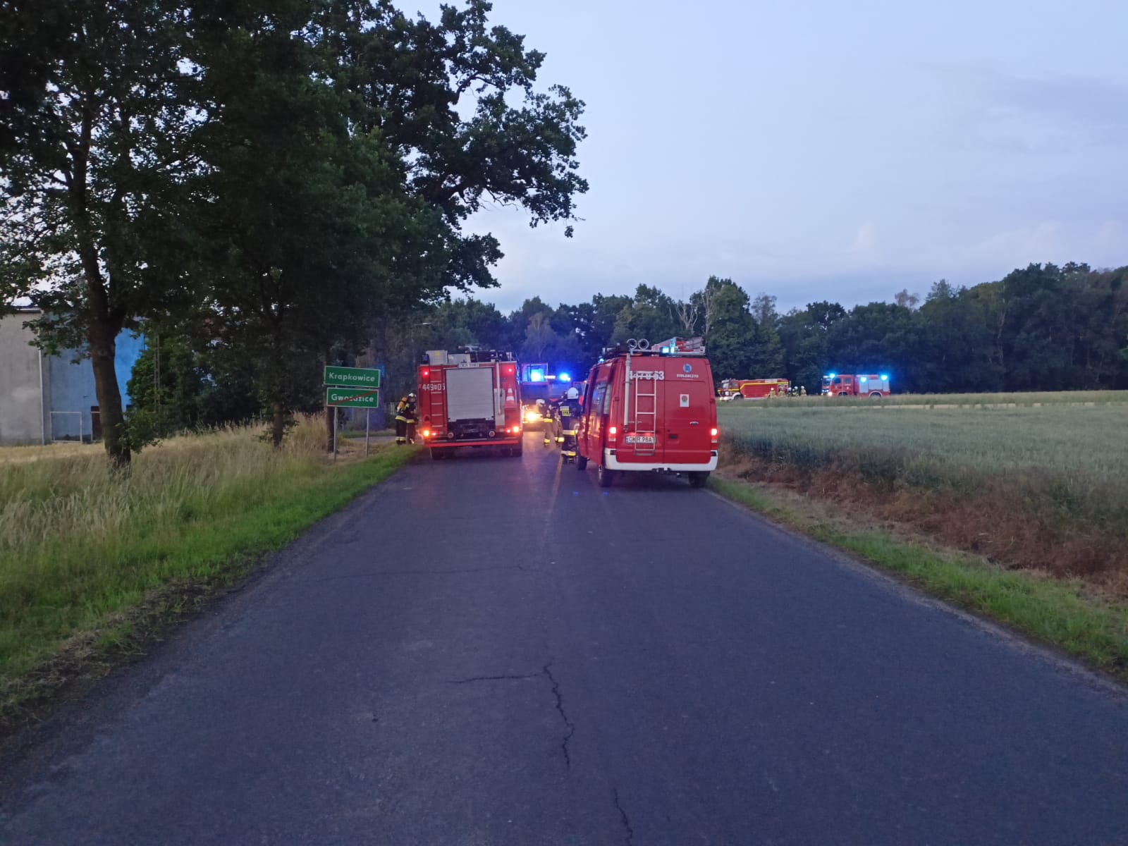 17 czerwca 2022 roku, nad ranem bo o 3:44 dyżurny Stanowiska Kierowania KP PSP Krapkowice otrzymał zgłoszenie o pożarze stodoły w Krapkowicach. Na miejsce zadysponowano łącznie 9 zastępów straży: trzy z JRG i sześć zastępów OSP z gminy Krapkowice z jednostek z Kórnicy, Rogowa Opolskiego, Żużeli i Dąbrówki Górnej. Strażacy po dojeździe na miejsce zdarzenia zastali w pełni rozwinięty pożar. W trakcie działań część dachu stodoły uległa zawaleniu. Stodoła usytuowana była w kompleksie budynków gospodarczych i mieszkalnego. Pożar zauważyli funkcjonariusze policji, a mieszkańcom, którzy na ich polecenie opuścili budynek nic się nie stało.